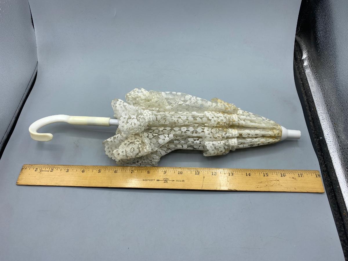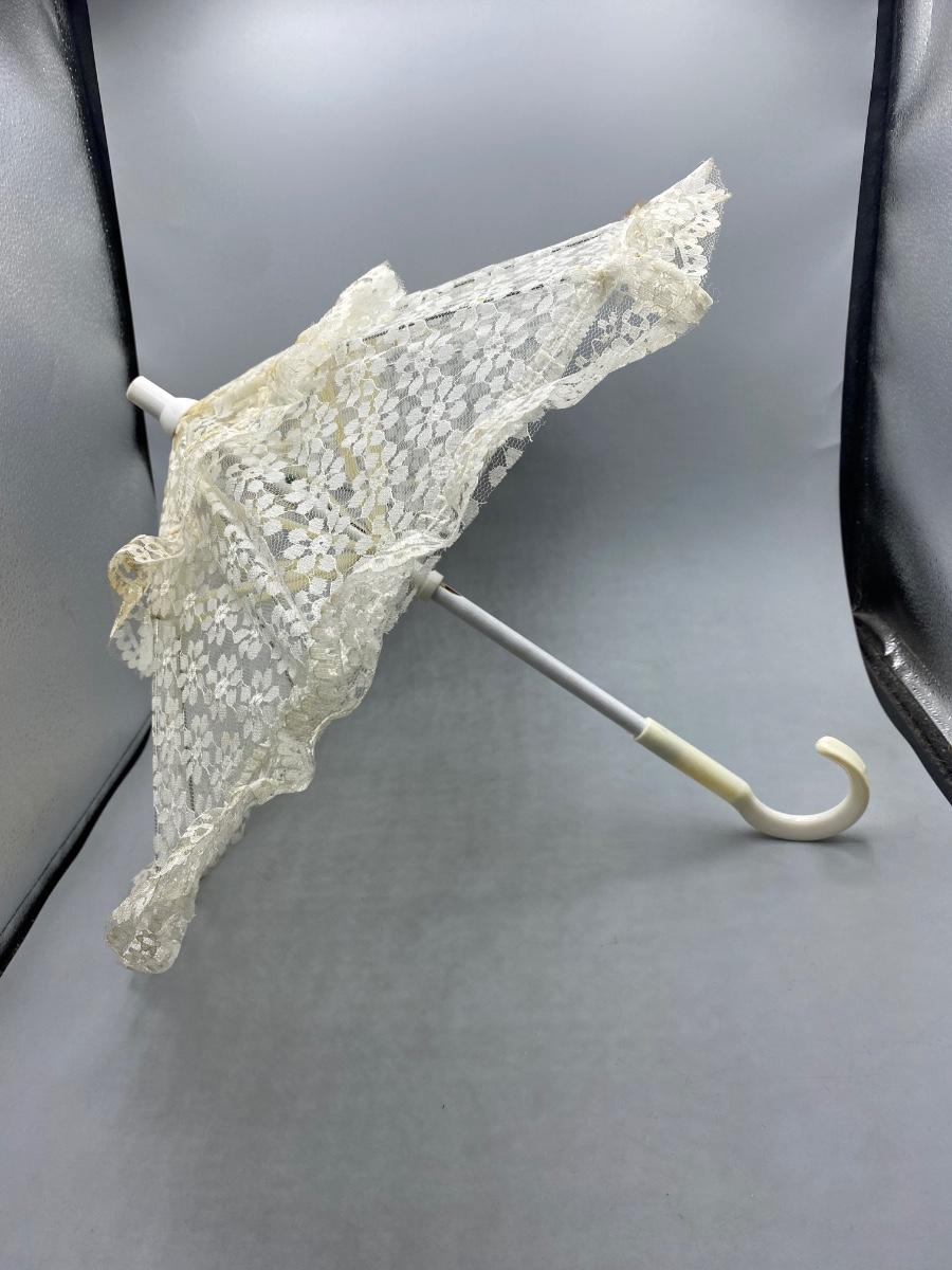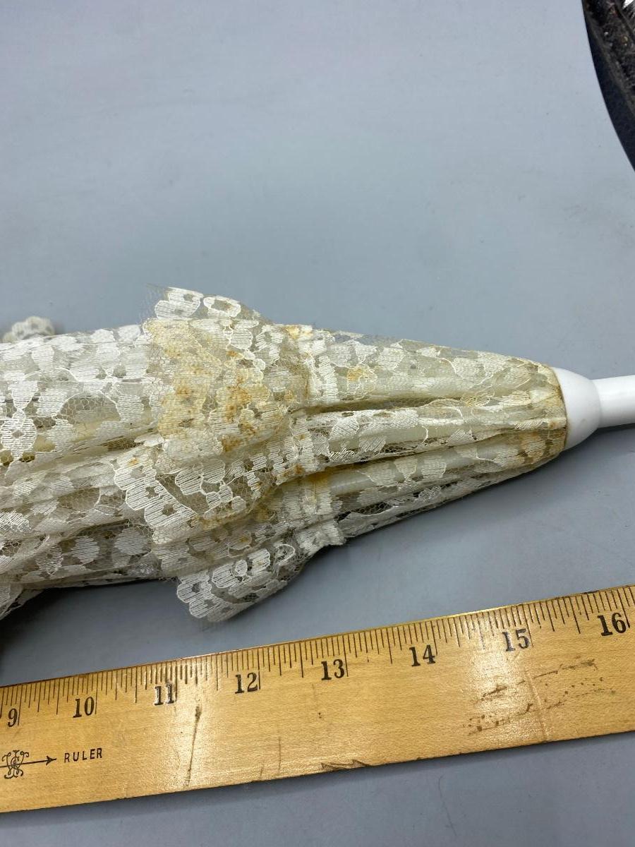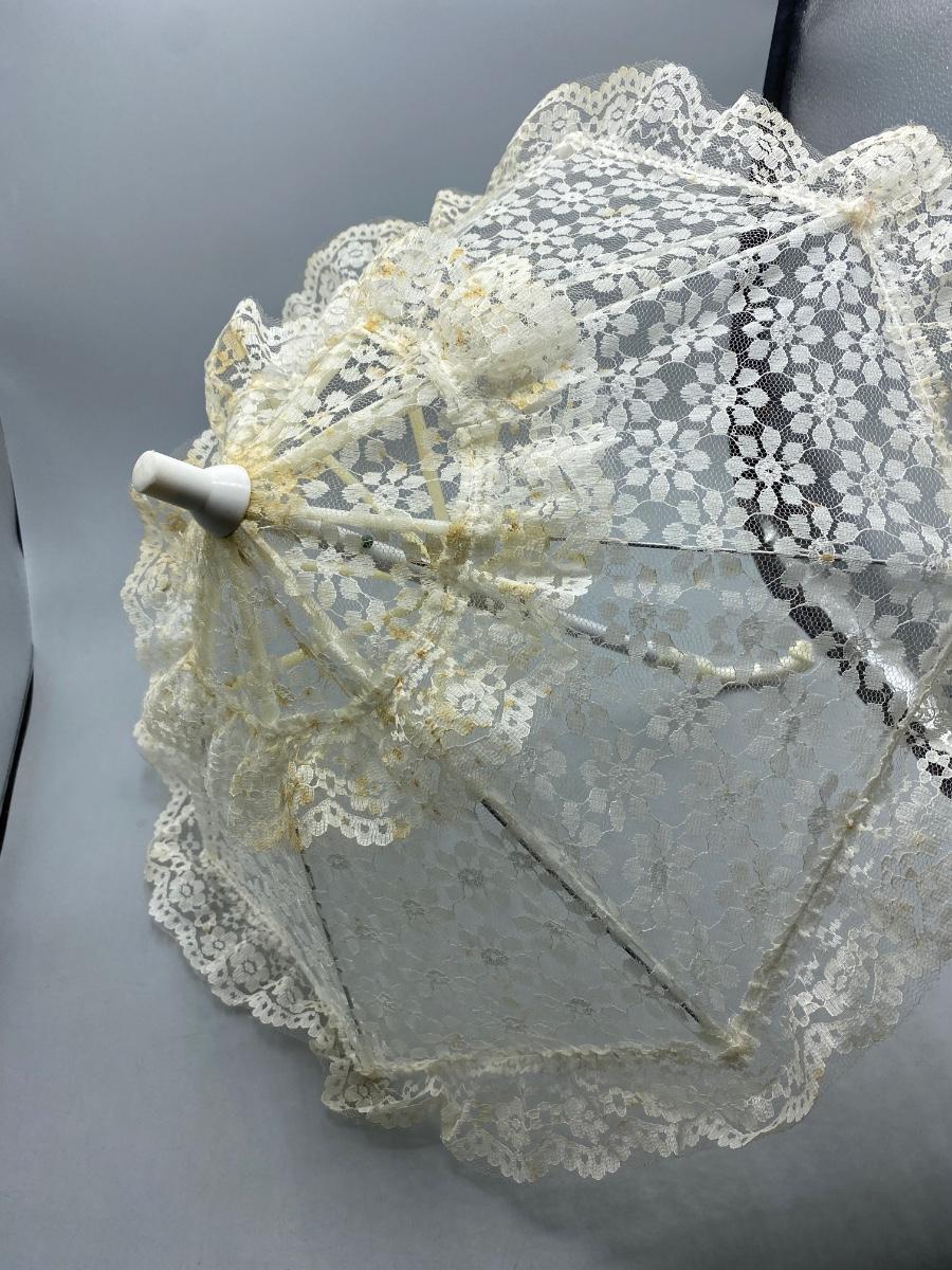 Small Child Sized Lace Parasol Umbrella. No holes but does have discolor. Great for playing dress up.