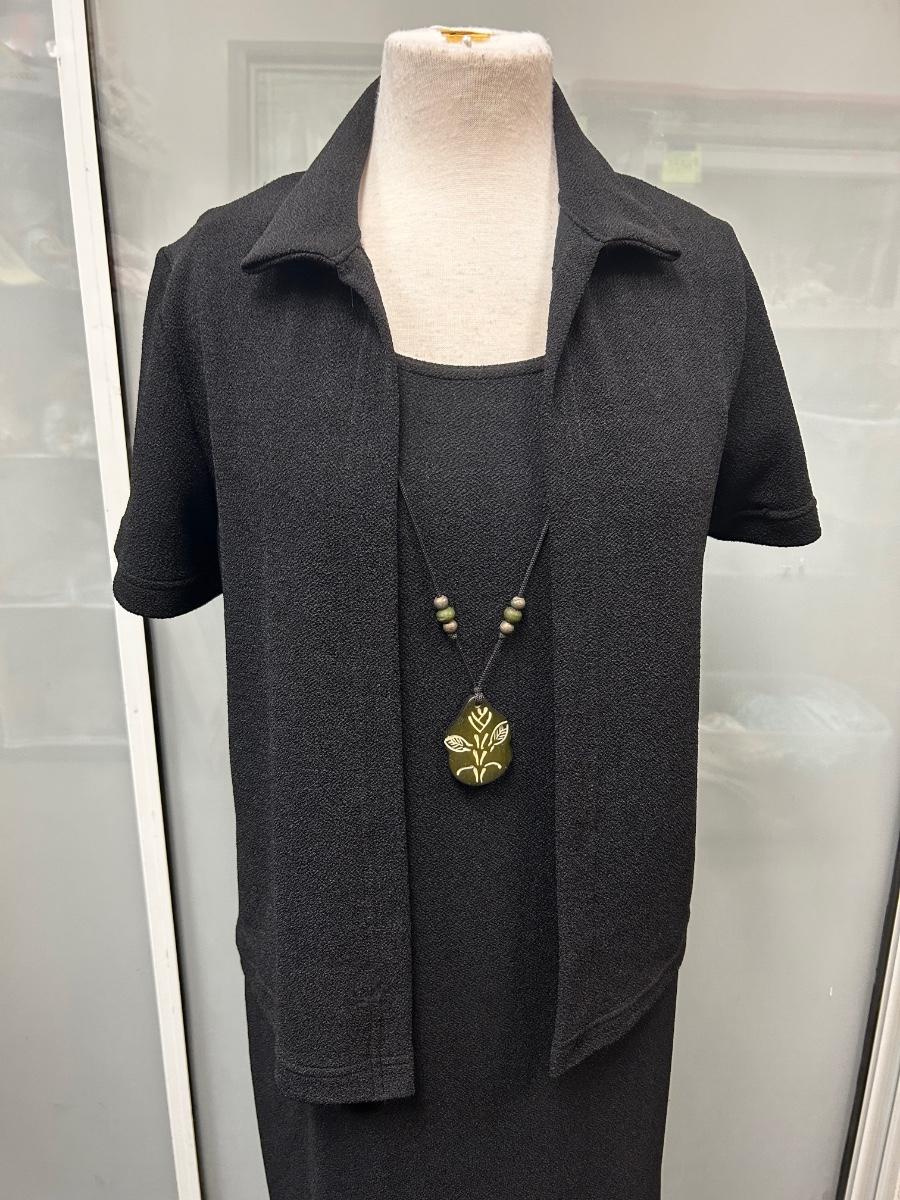 Two Piece Black Sleeveless Body Con Maxi Dress with Short Sleeve Cover Blouse Removeable Necklace