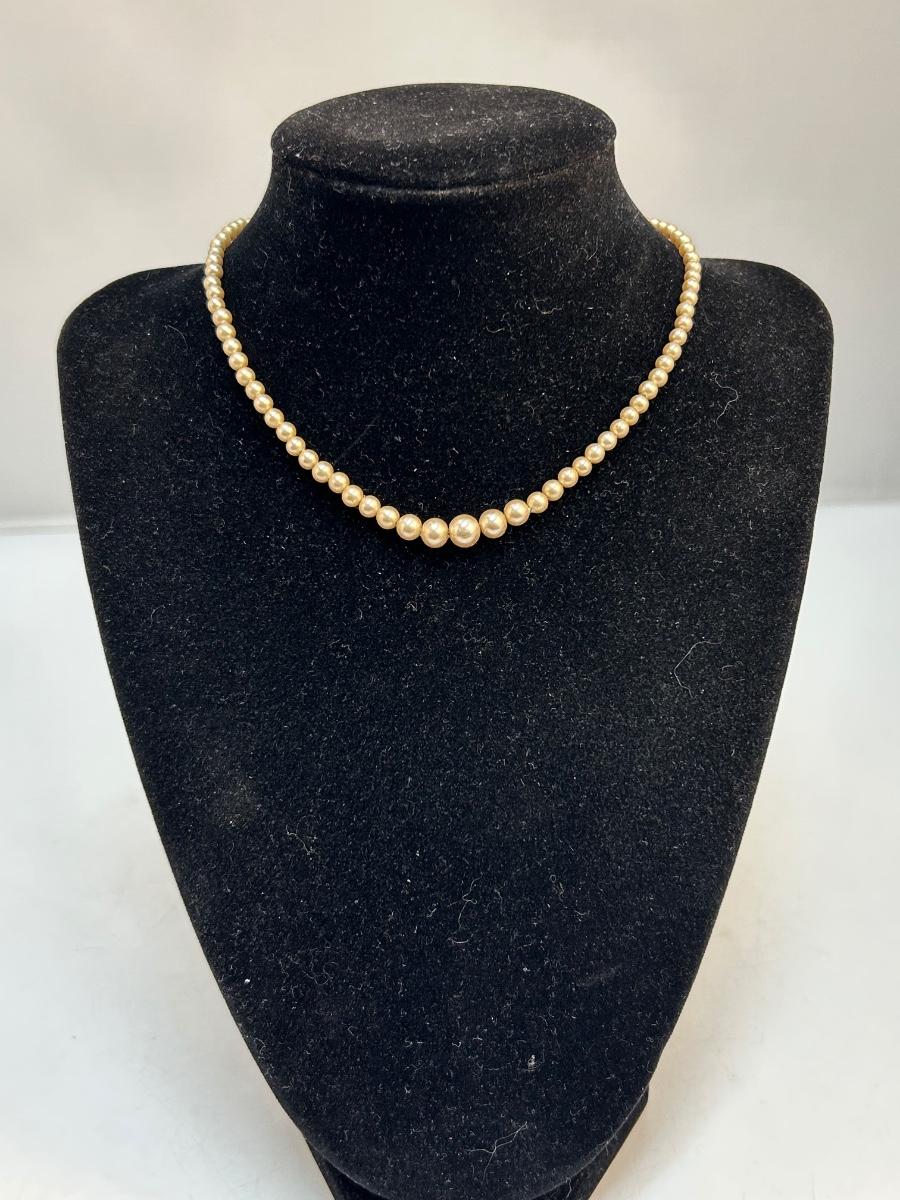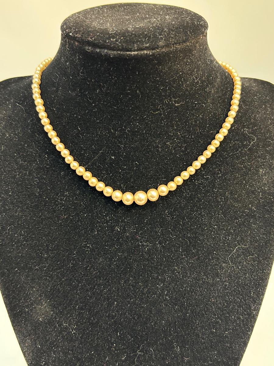 Vintage Choker Style Pearl Necklace Graduating Size. In vintage condition. Pearls seem to be real not beads.
