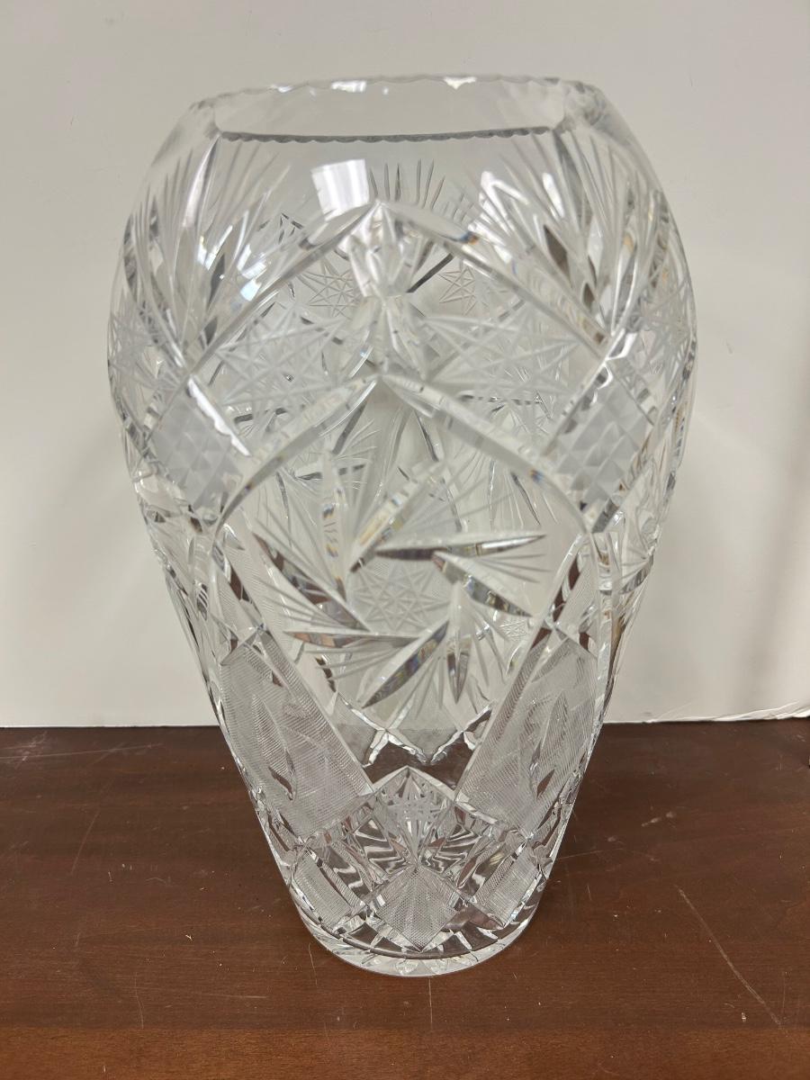 GIANT Large Pinwheel and Star Cut Crystal Floral Flower Vase