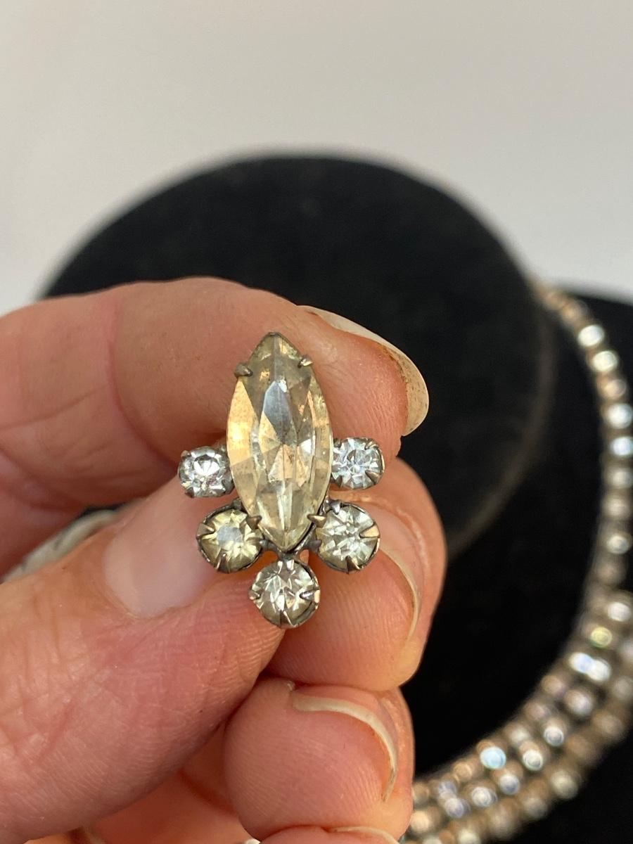Vintage Crystal Clear Rhinestone Choker Necklace & Screwback Earrings. In good vintage condition. Some of the rhinestones look a bit smoky but not bad.
