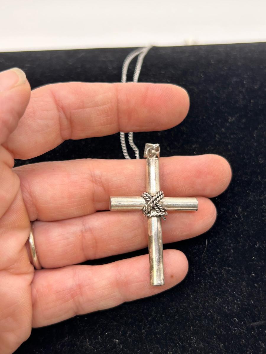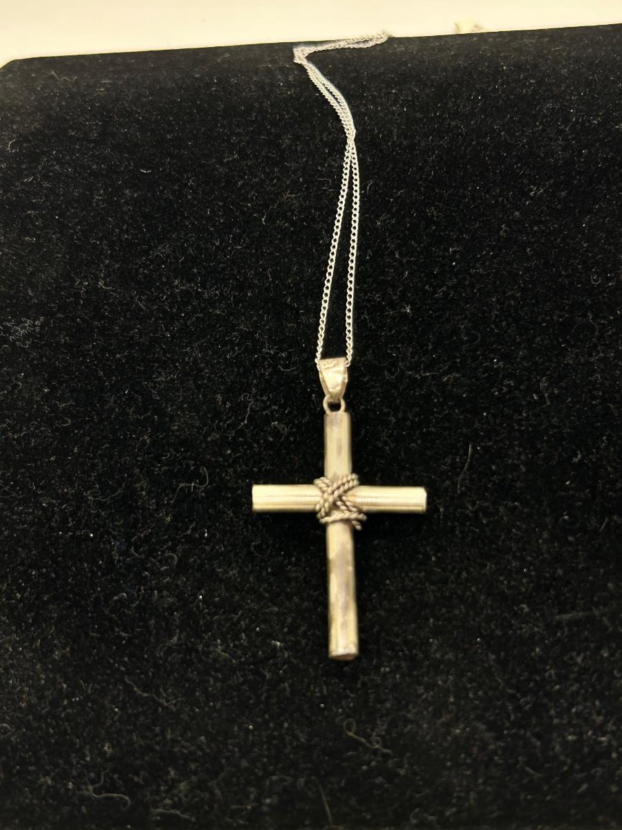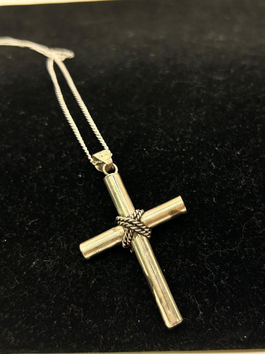 Sterling Silver 925 Made in Mexico Cross Pendant Necklace. In good condition. Marked on pendant loop.