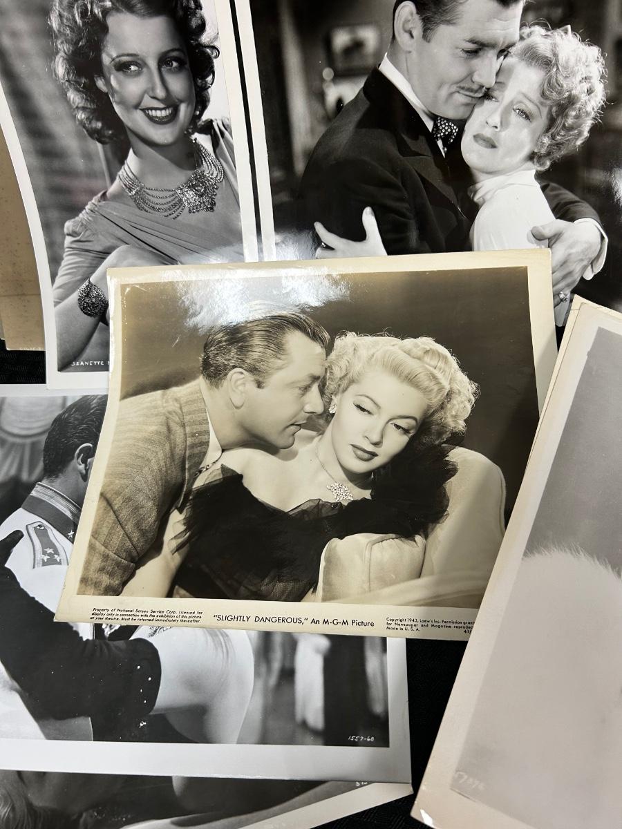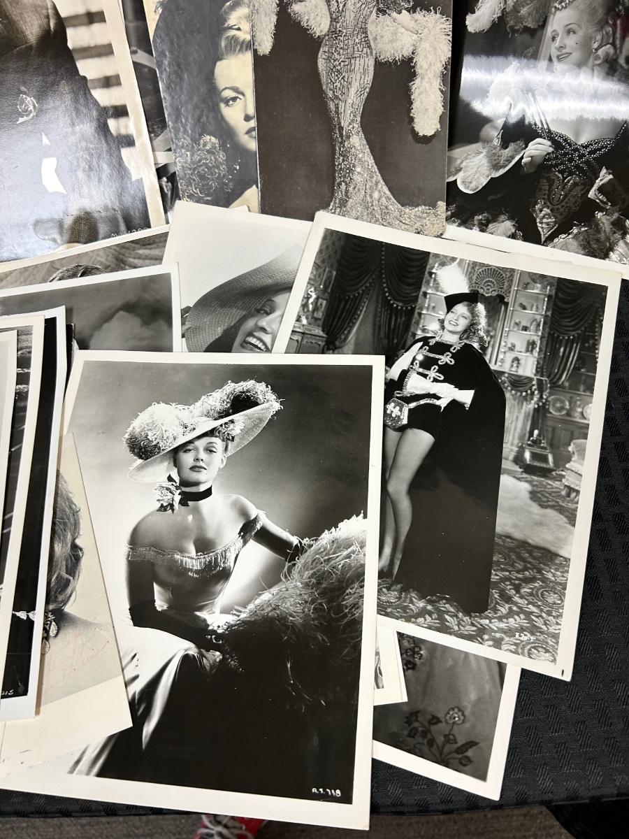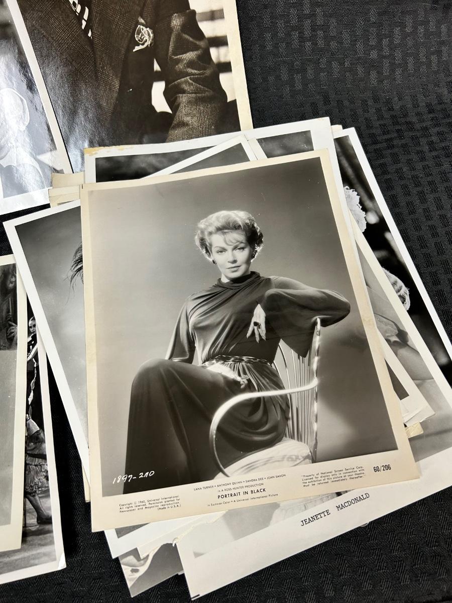 Large Collection of Black & White Hollywood Actress Headshot Movie Promo Stills. Leading ladies, Betty Grable, Jeanette Macdonald, Vivian Blaine, Lana Turner and Others. Look to be promo and headshots used for publications and fan clubs. From the mid 1950s.