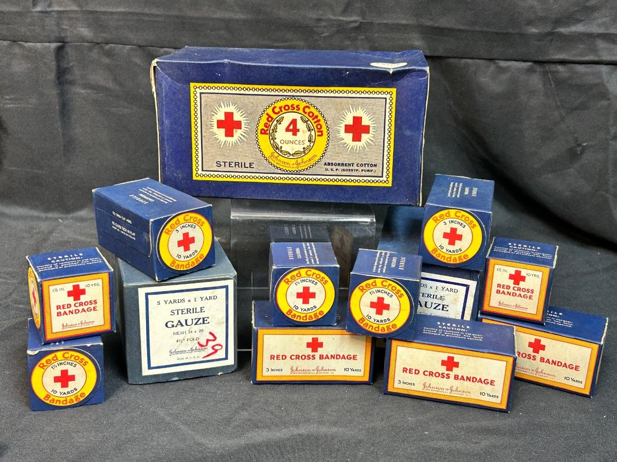 Vintage Red Cross Cotton Unopened Boxes Sterile Gauze Bandages