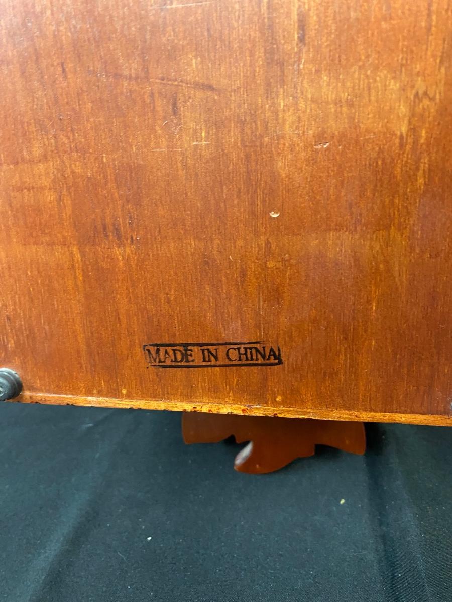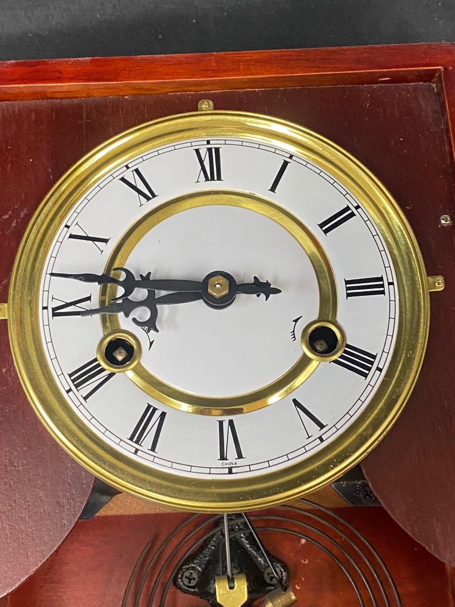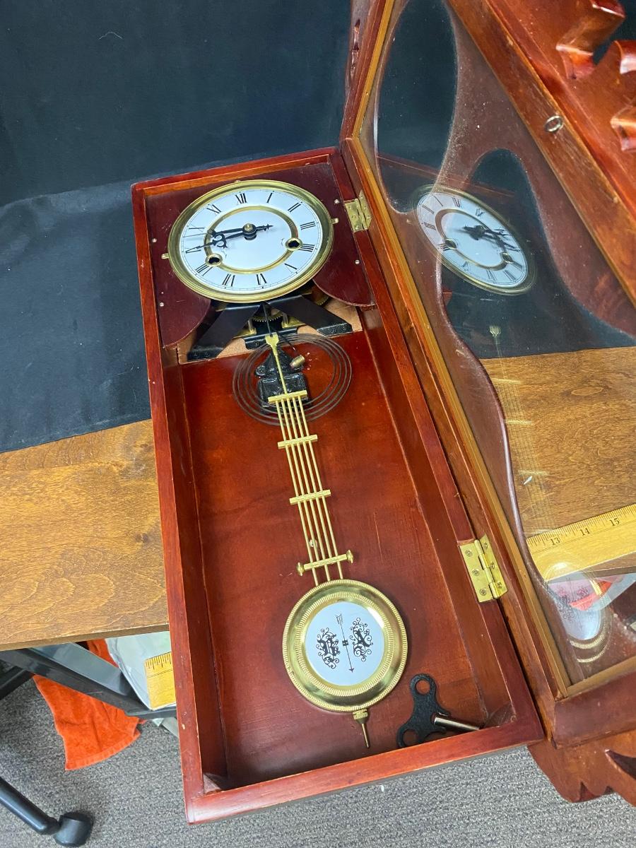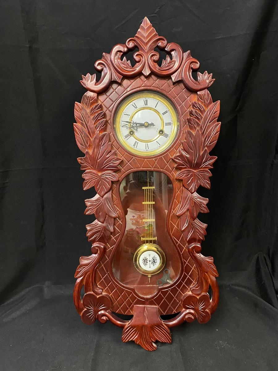 Vintage Carved Wood Hanging Wall Clock. Made in China, unbranded. Untested but complete with key.