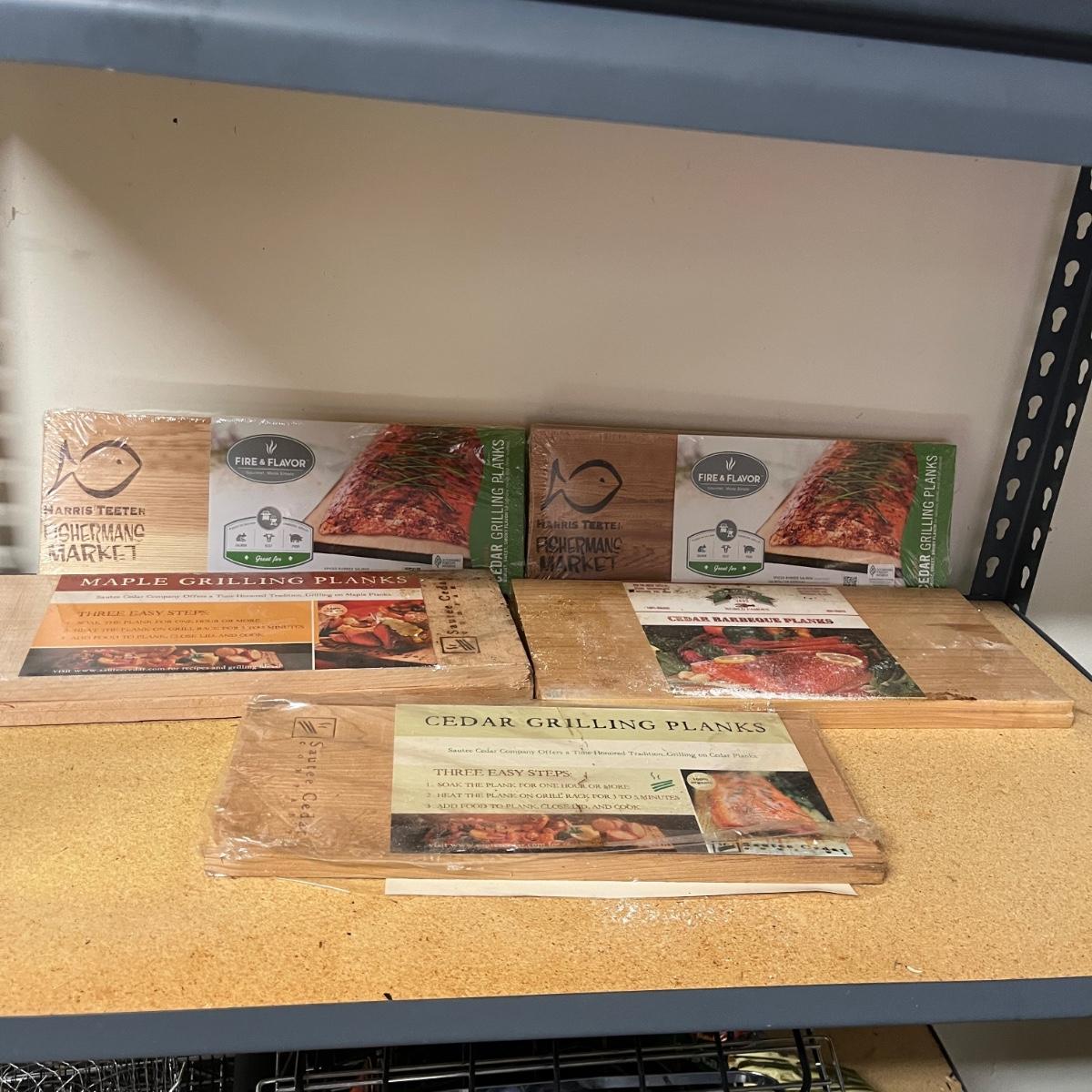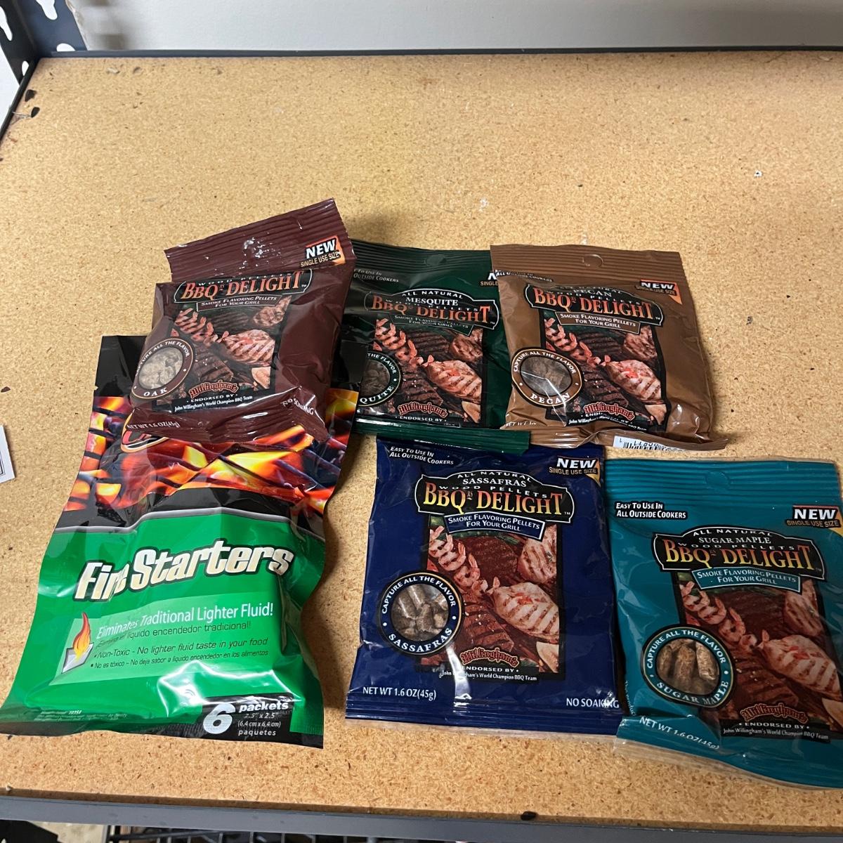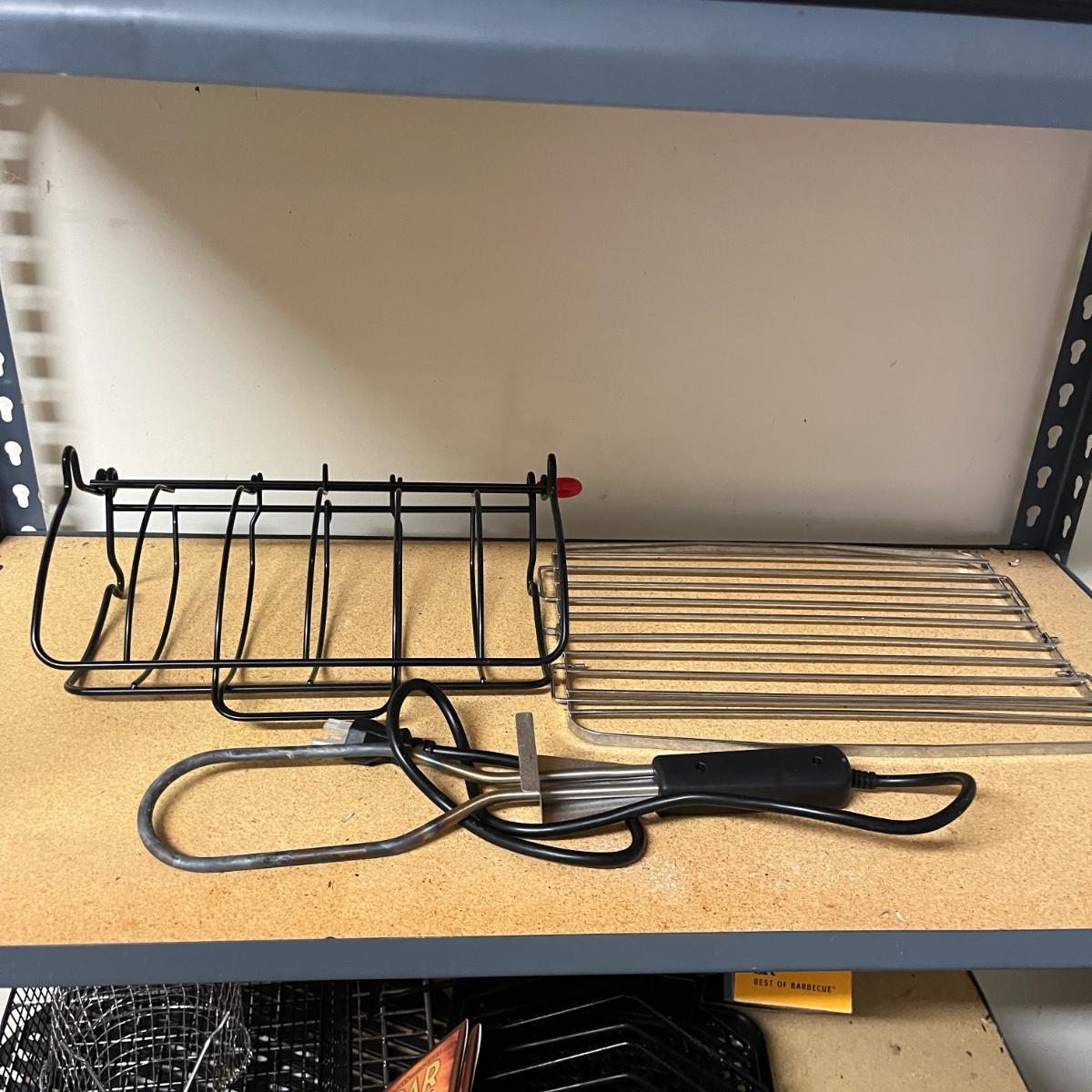 Lot includes cedar planks, metal baskets, electric charcoal starter (not tested), flavor pellets, two new rolls of aluminum foil and more. Largest basket measures 18” x 11” x 3.75”H.
