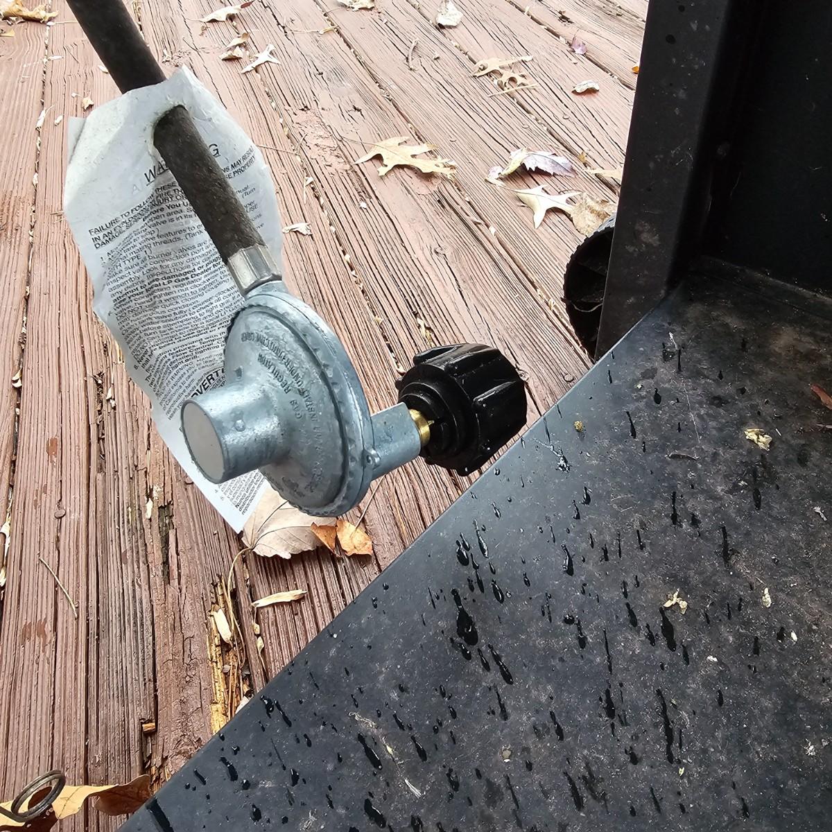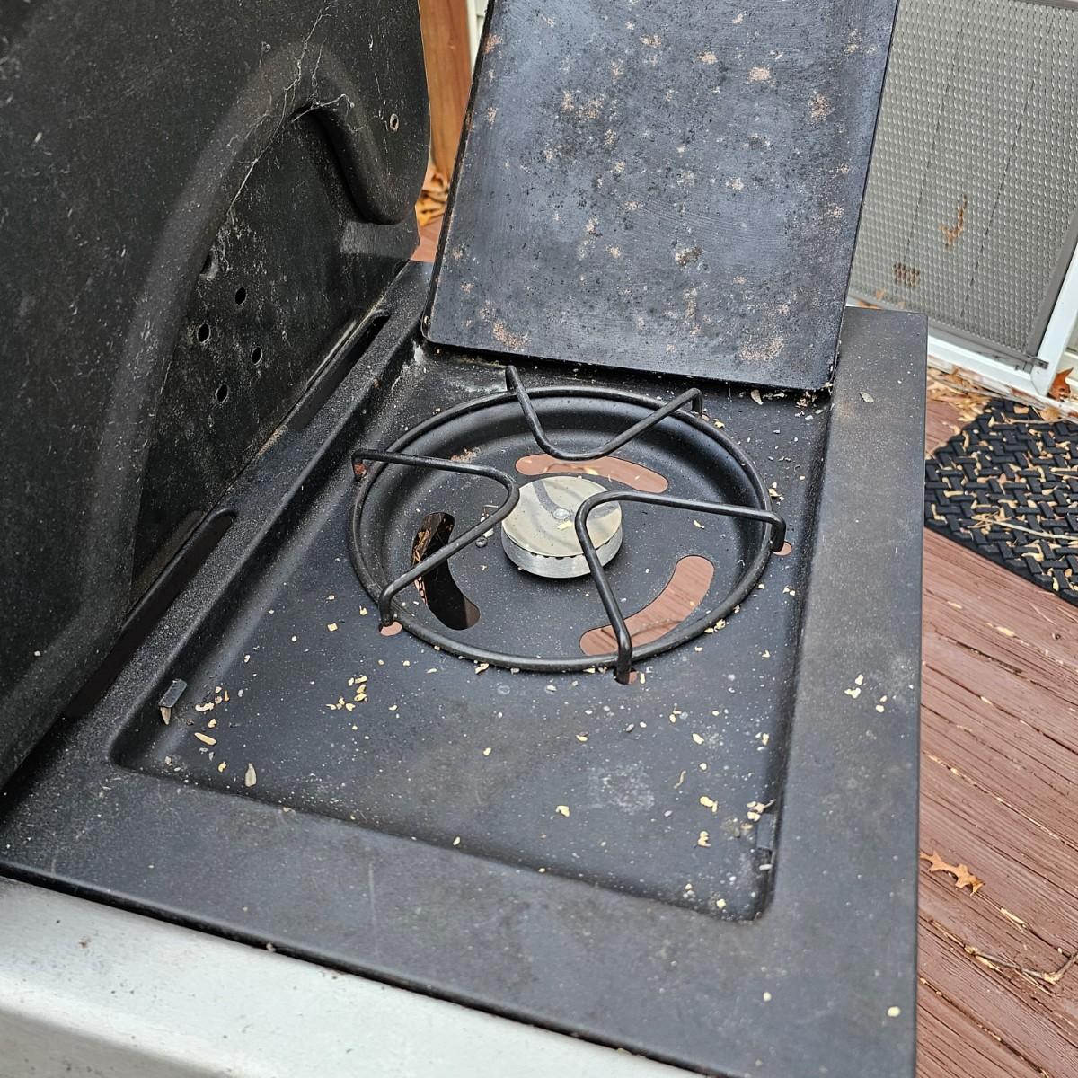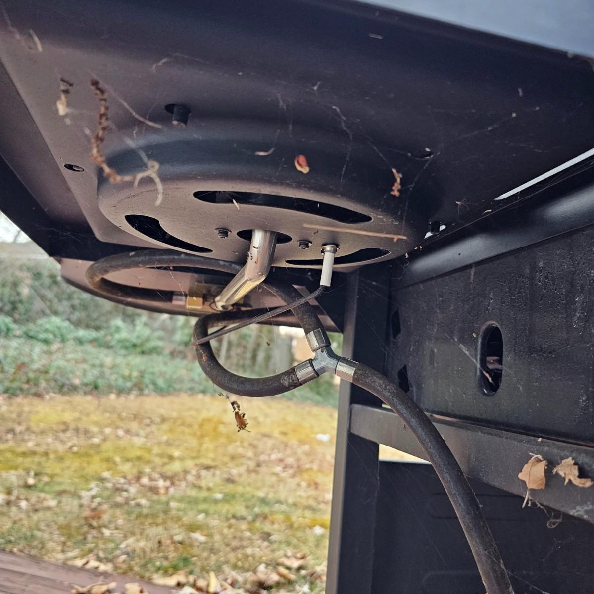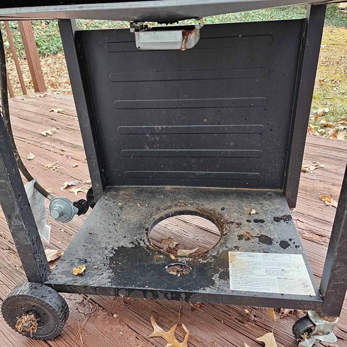 One Grillware brand barbecue grill, three main burners and a side unit. Has built in thermometer in lid, self igniter (untested), and two tools plus cover. Grill measures 52.5" x 23" x 46"H. No LP tank included. Cover has small tear in top. See photos for details. Local pickup only.