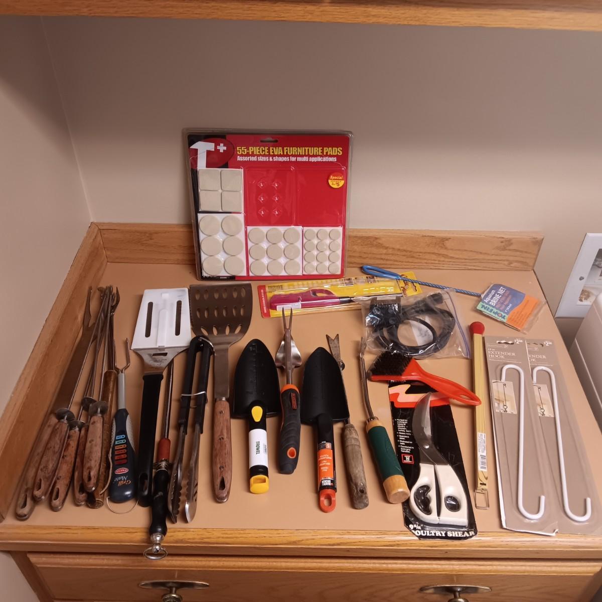 BBQ UTENSILS, YARD HAND TOOLS, FELT FURNITURE PADS AND MORE