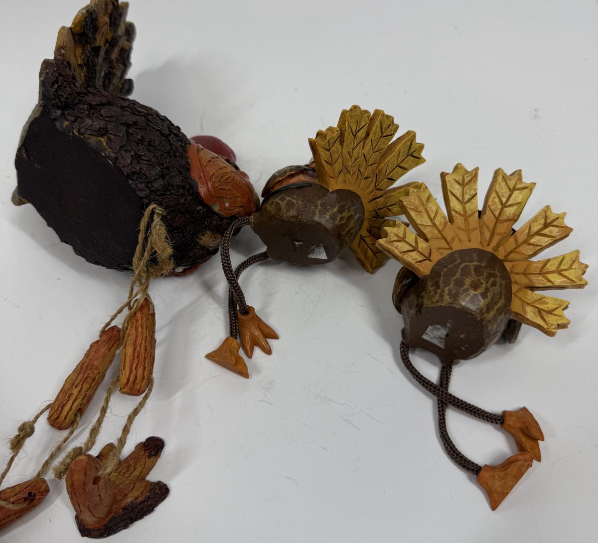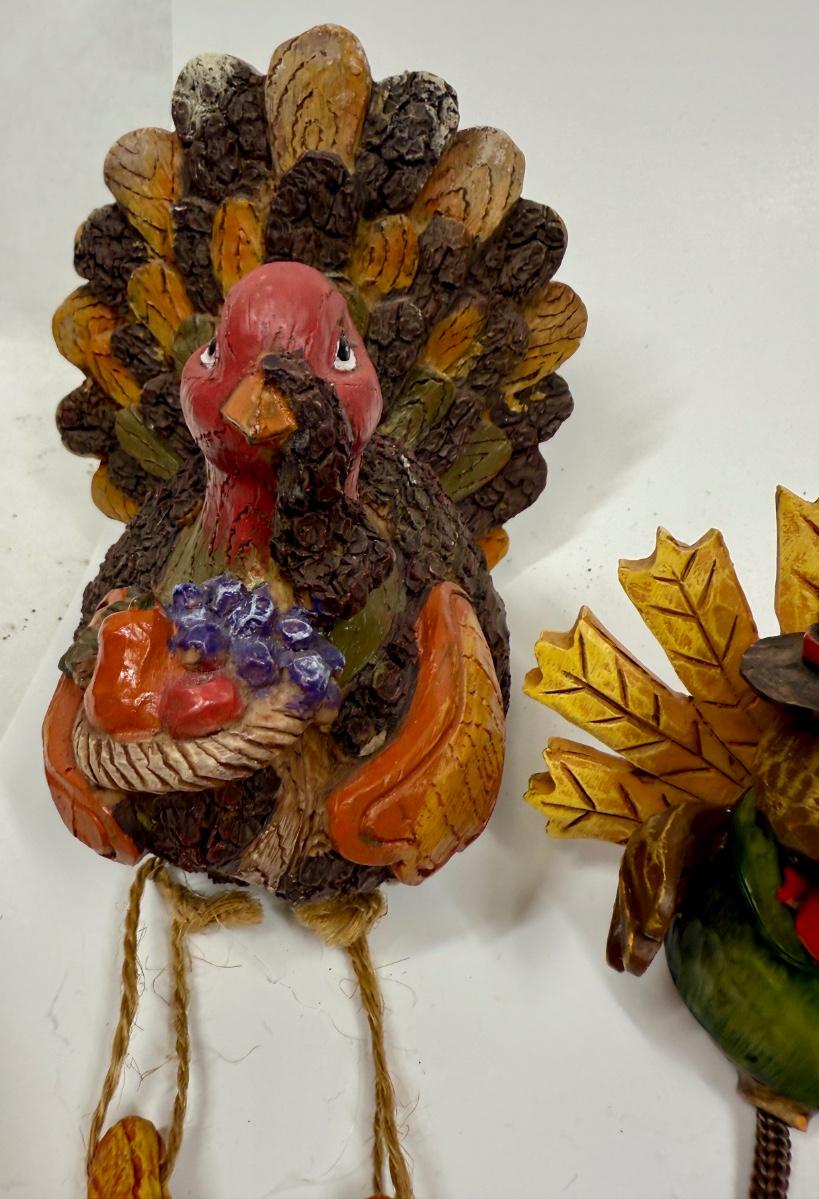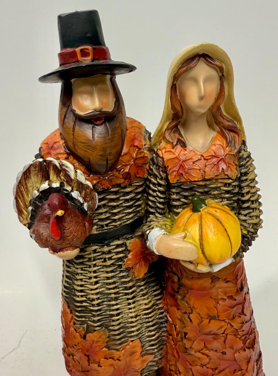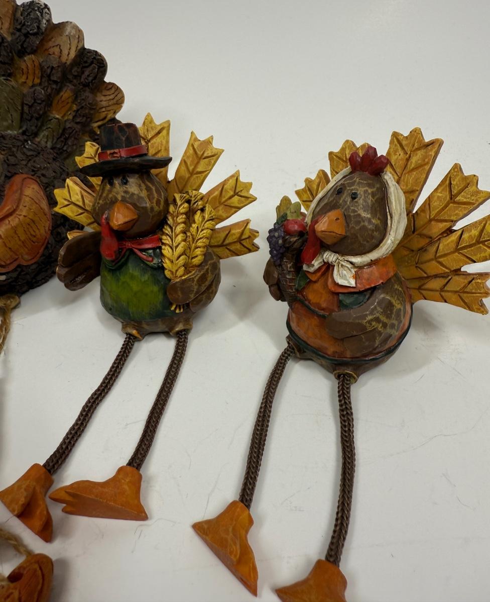 Thanksgiving Decor lot - Pilgrim Couple with 3 Turkey Shelf-sitters