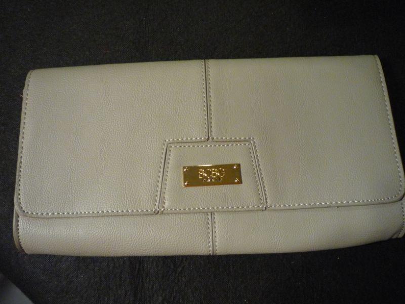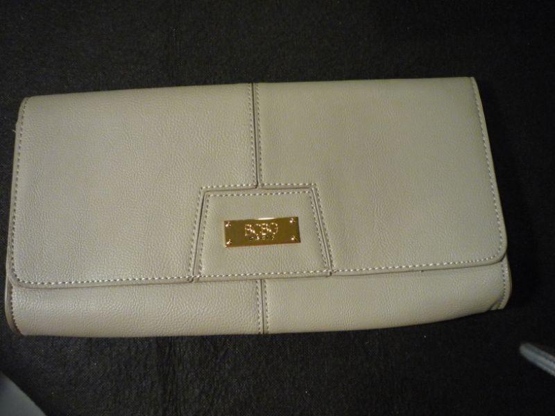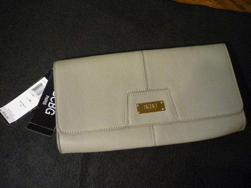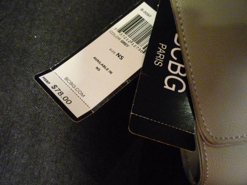 BCBG PARIS Clutch Purse - NEW WITH TAGS - Grey Leather
