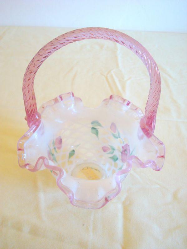 bd1 L107 - Fenton Glass Basket with Ruffles and Flowers