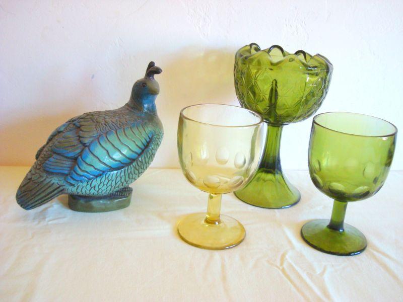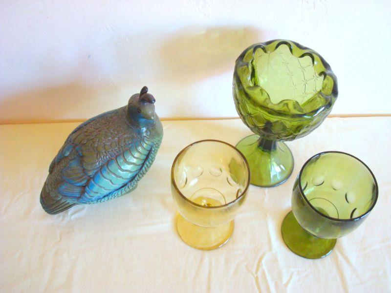 bd1 L110 - Mid century Glass Lot + Bird sculpture