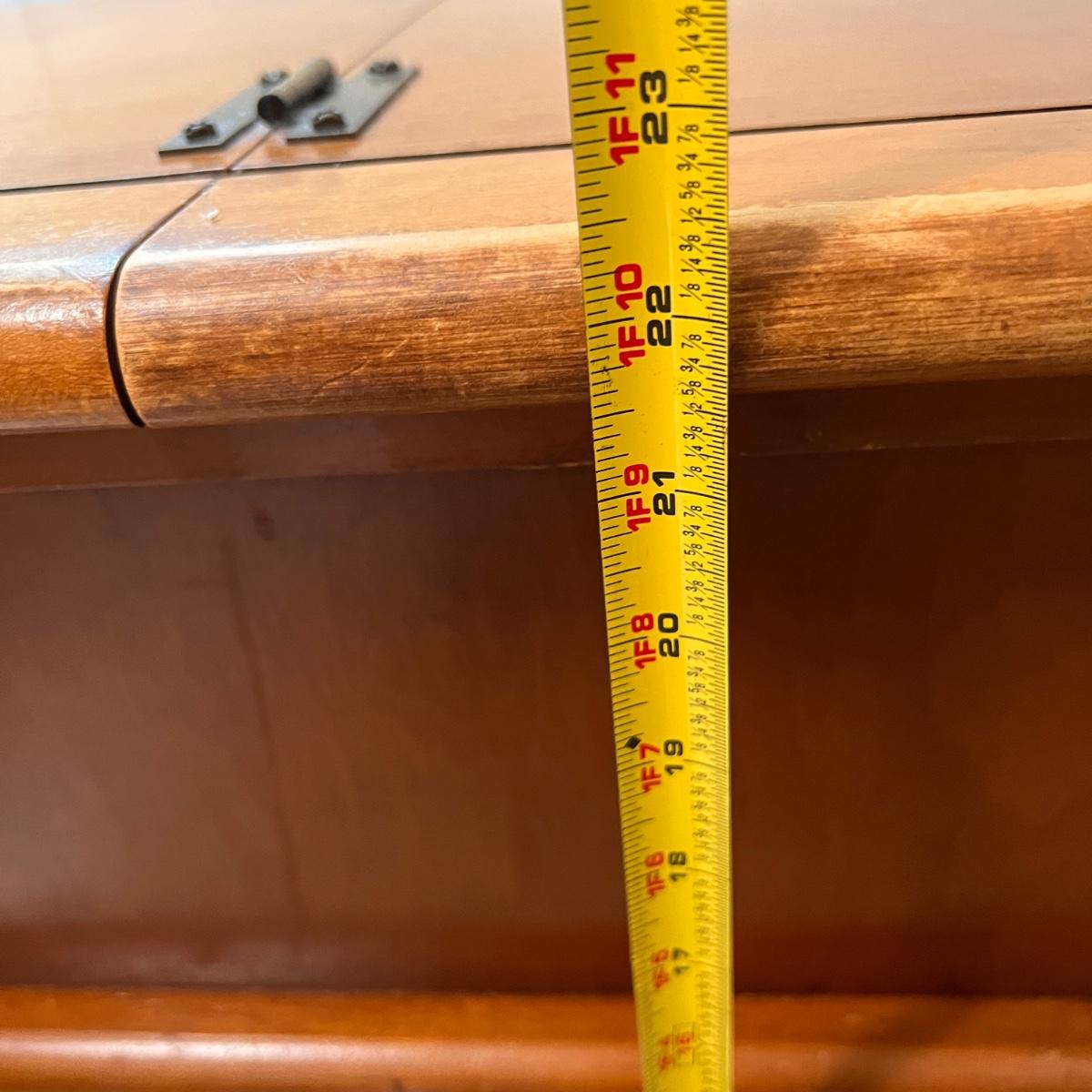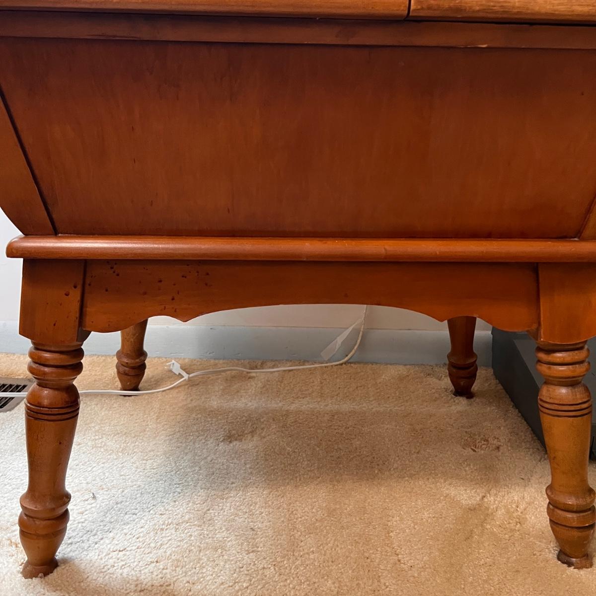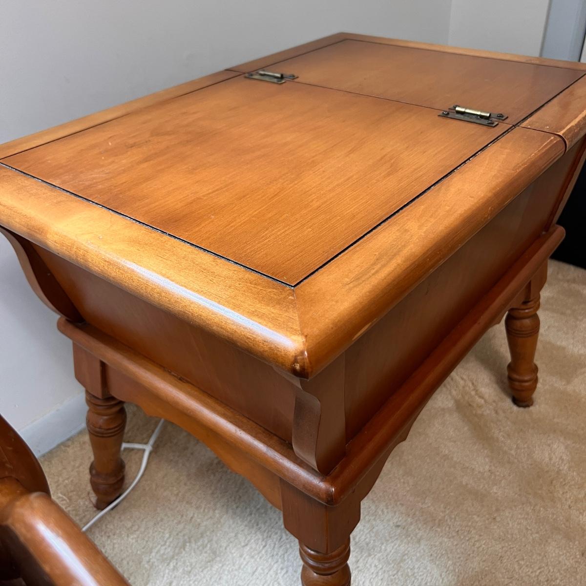 Vintage dough box end table. Traditional, colonial or country farmhouse style. The top shows some wear as shown in pics. Good condition, strong and sturdy.