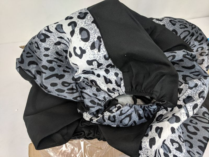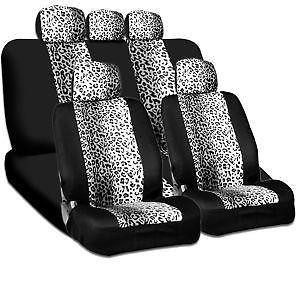 BDK Leopard Print Car Seat Covers Two Tone Zebra Accent on Black, 9pc Full Set - New Open Box