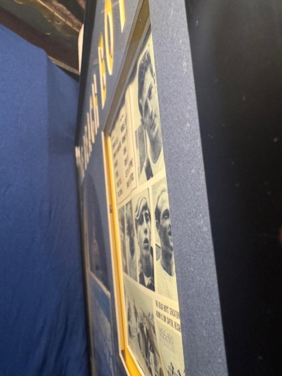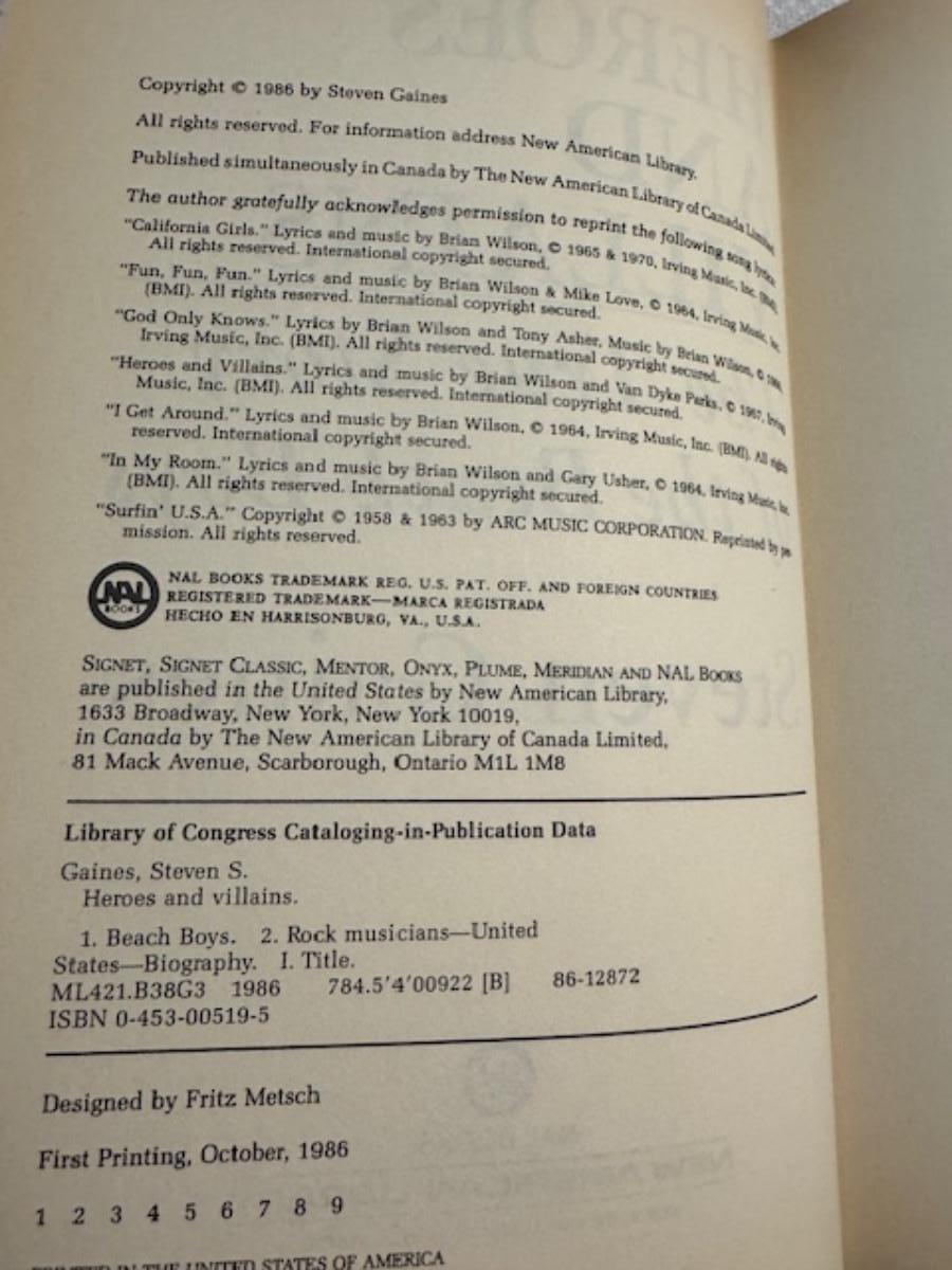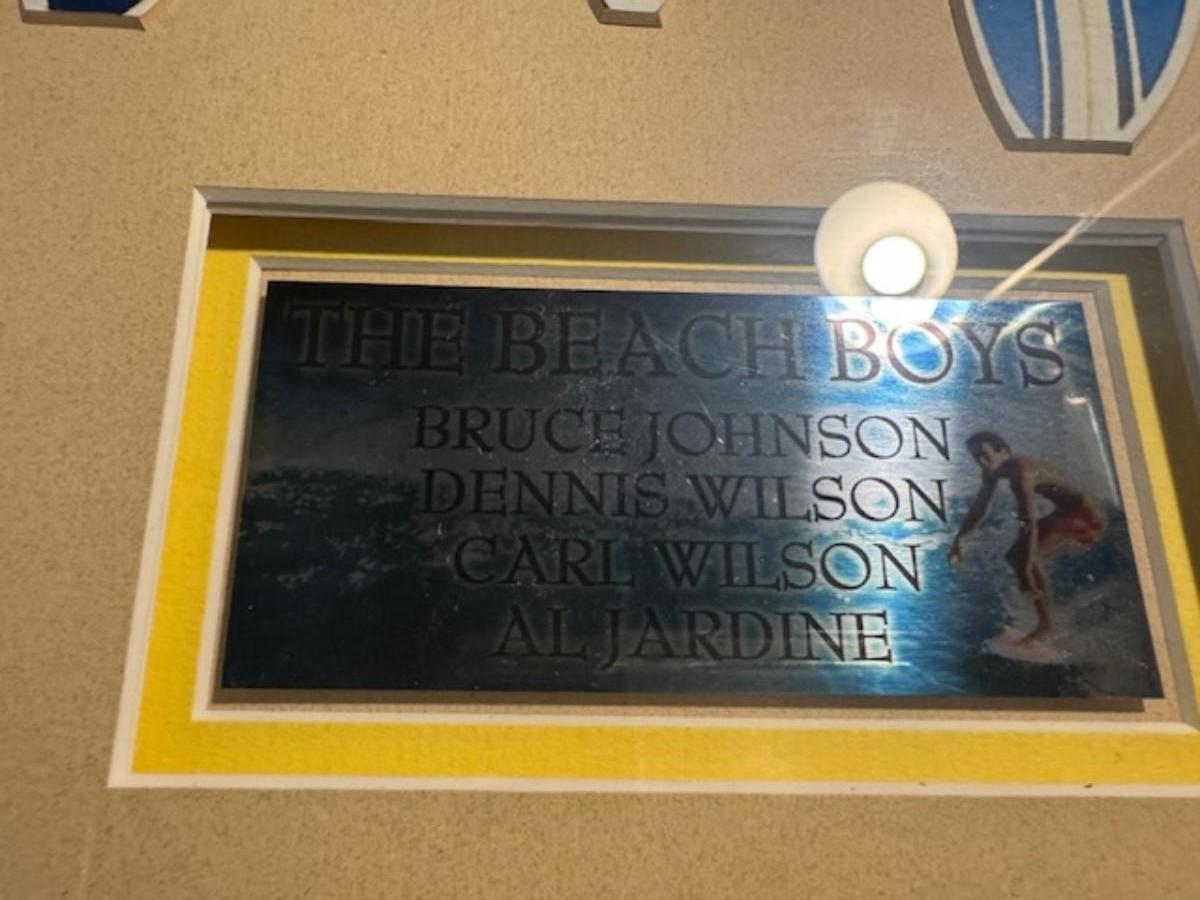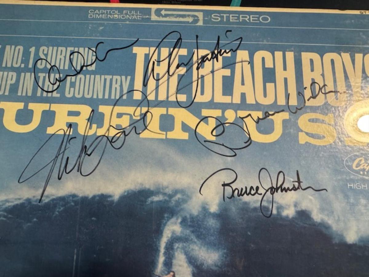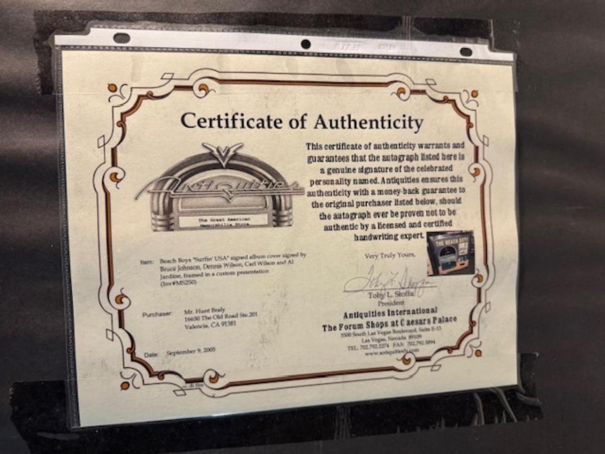 Beach Boys signed and framed LP 30.5" x 28.5" and book Heroes and Villains the true story of the Beach Boys by Steven Gaines.
