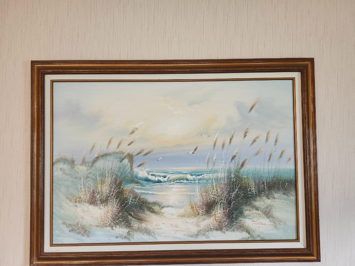 Beach Scene Painting, Landscape Painting, Oil On Сanvas Painting, Framed Original Painting, Lake View Painting, Sea Painting see pics for size and conidtion
