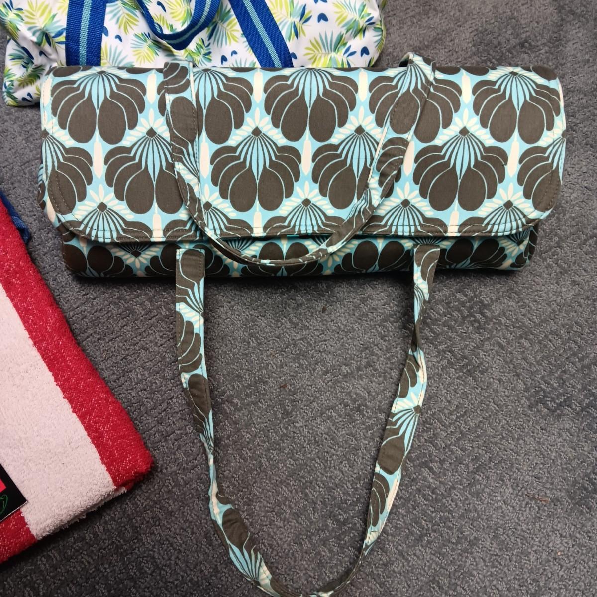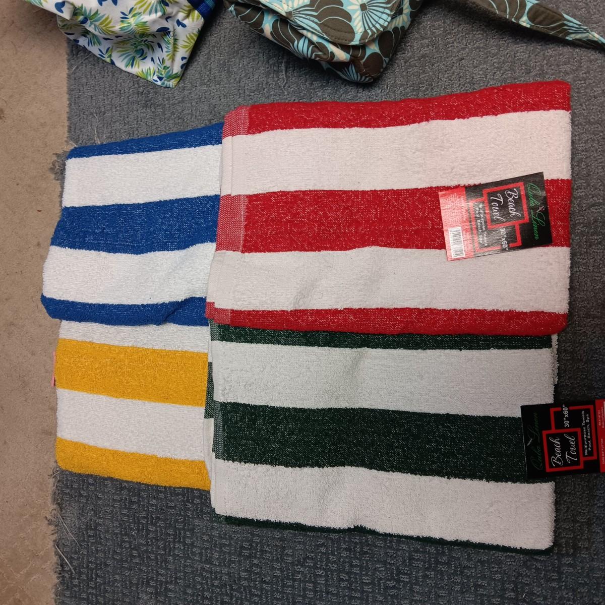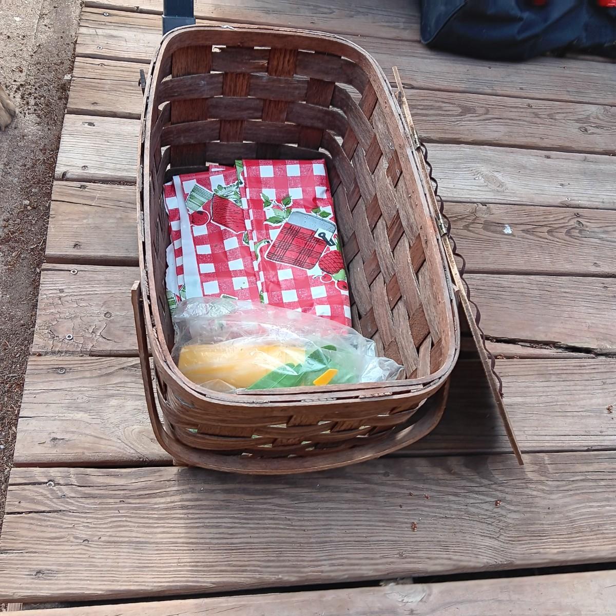 BEACH TOWELS, TOTES AND A WOODEN PICNIC BASKET