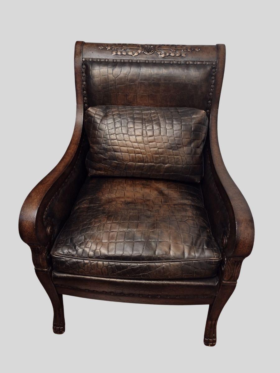 Beacon Hill Faux Alligator Skin Club Chair with Brass Tack Accents