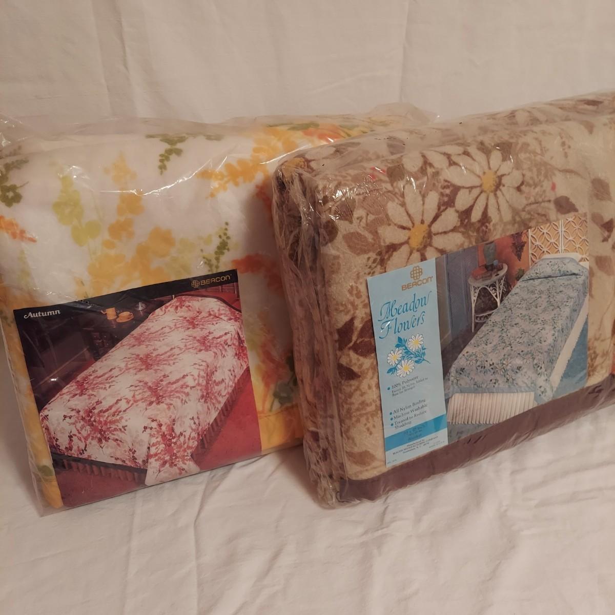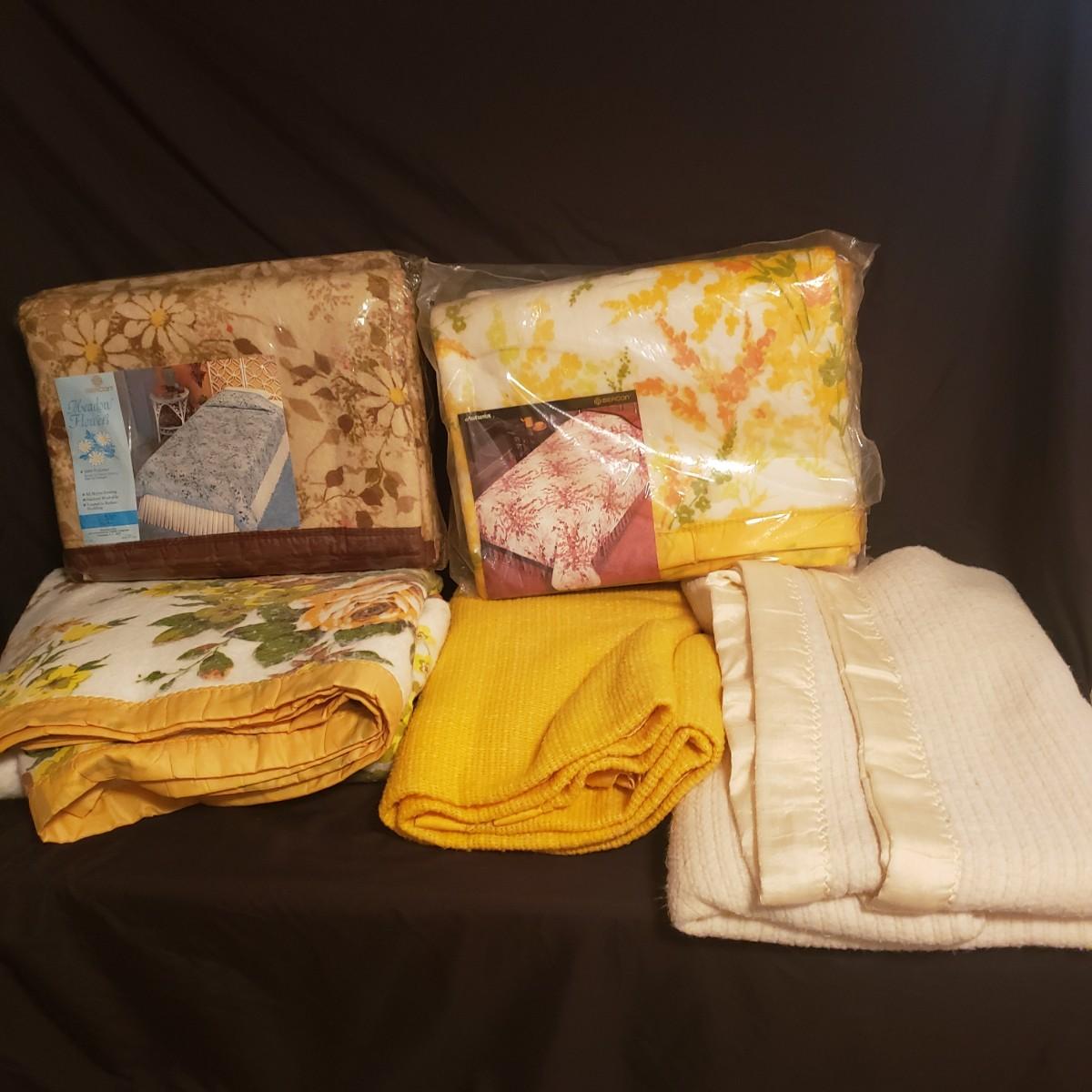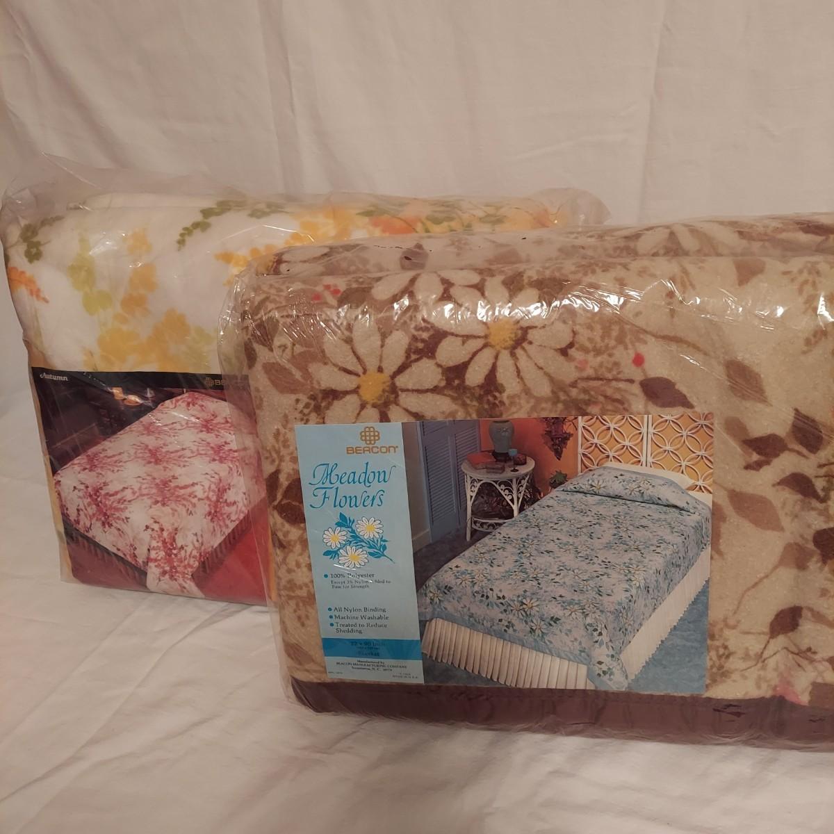 Five blankets adorn this lot. Two still in the package are locally made in Swannanoa, NC from the Beacon Manufacturers. See pictures for packaging information. The three other blankets are not marked but are in a similar style. Please see photos for details.