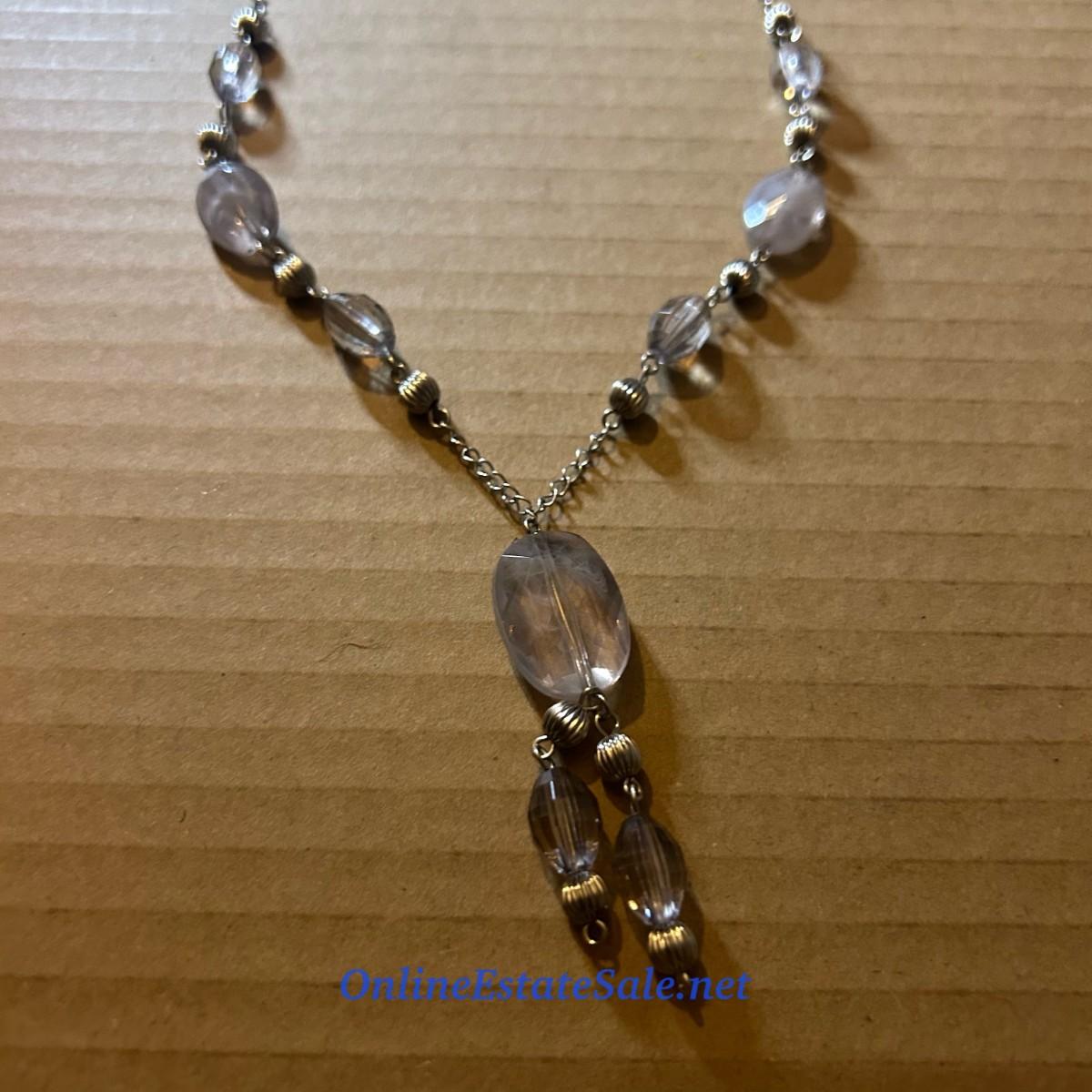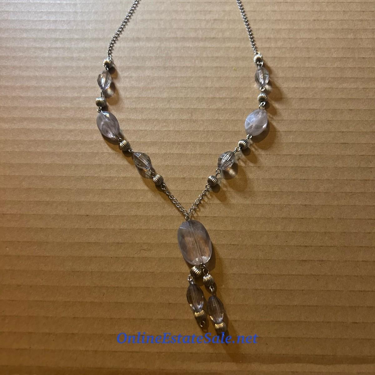 22in Clear and Silver Beaded Chain Necklace with Toggle Clasp
