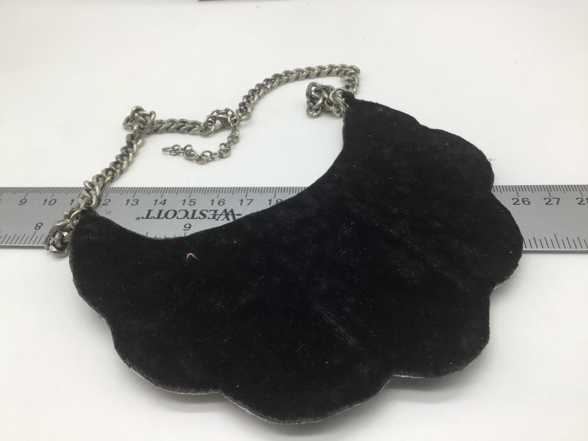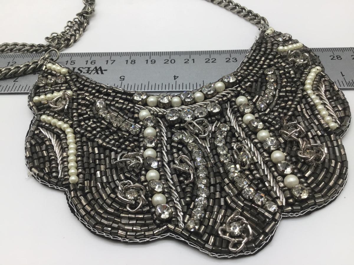 Bead and Crystal Studded Bib Necklace Gunmetal Velvet Back