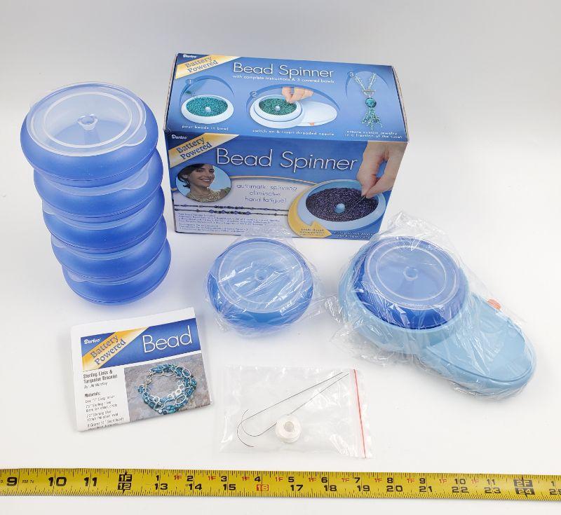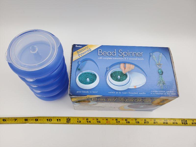 DARICE bead spinner and, one of the containers was removed and is missing, the rest of the pieces in the box look unused, 5 extra containers inlcuded in this lot.