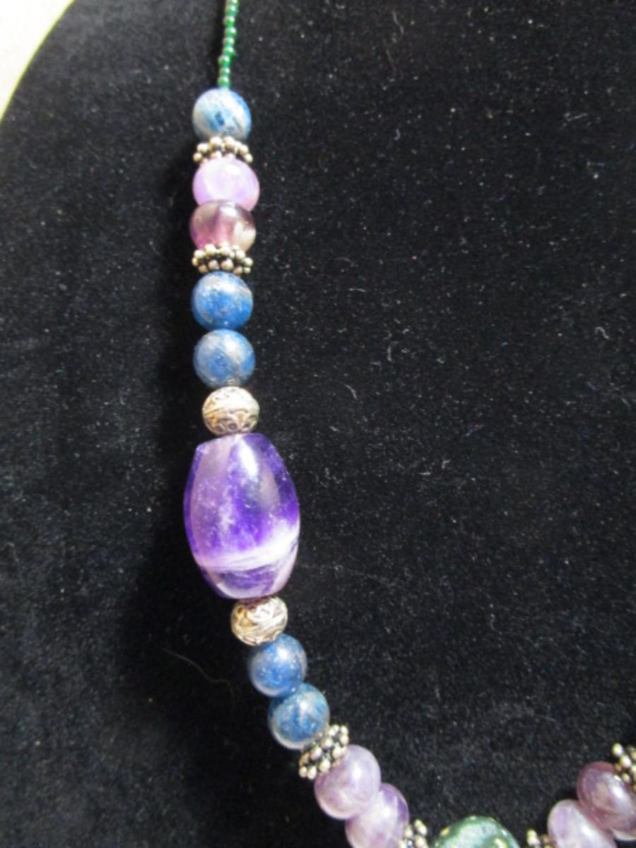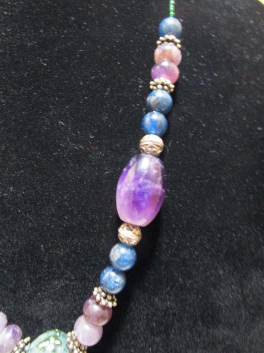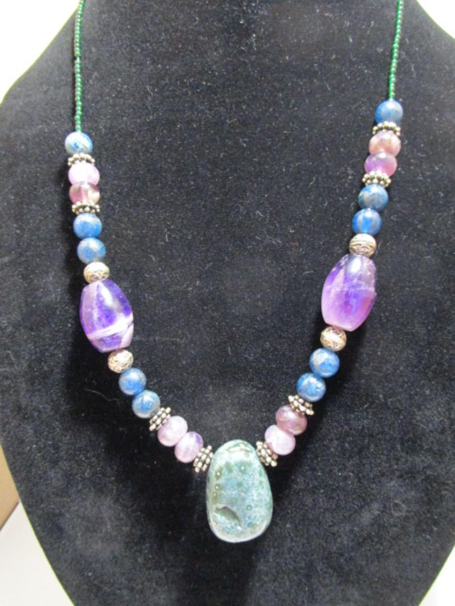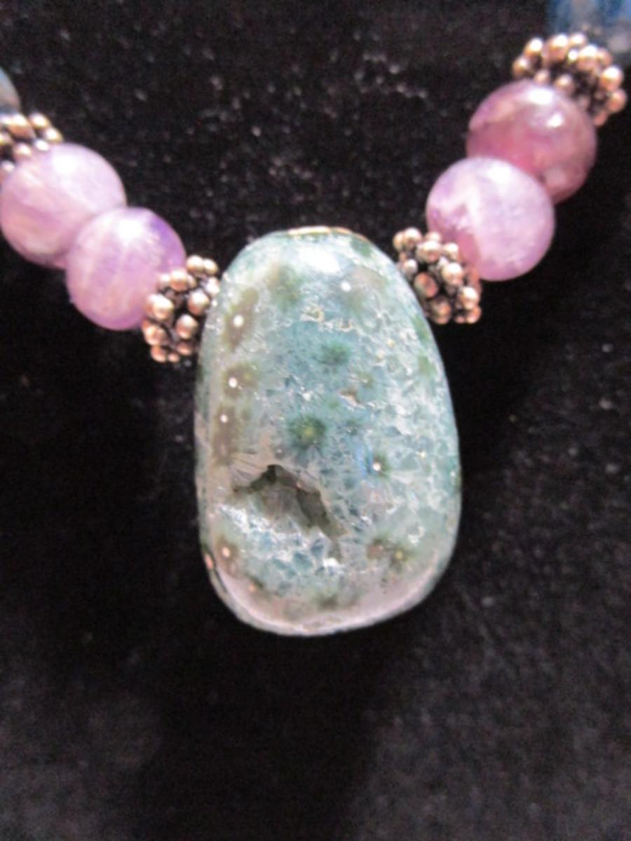 Bead & stone Necklace 20" with 1"pendant and double magnetic hook