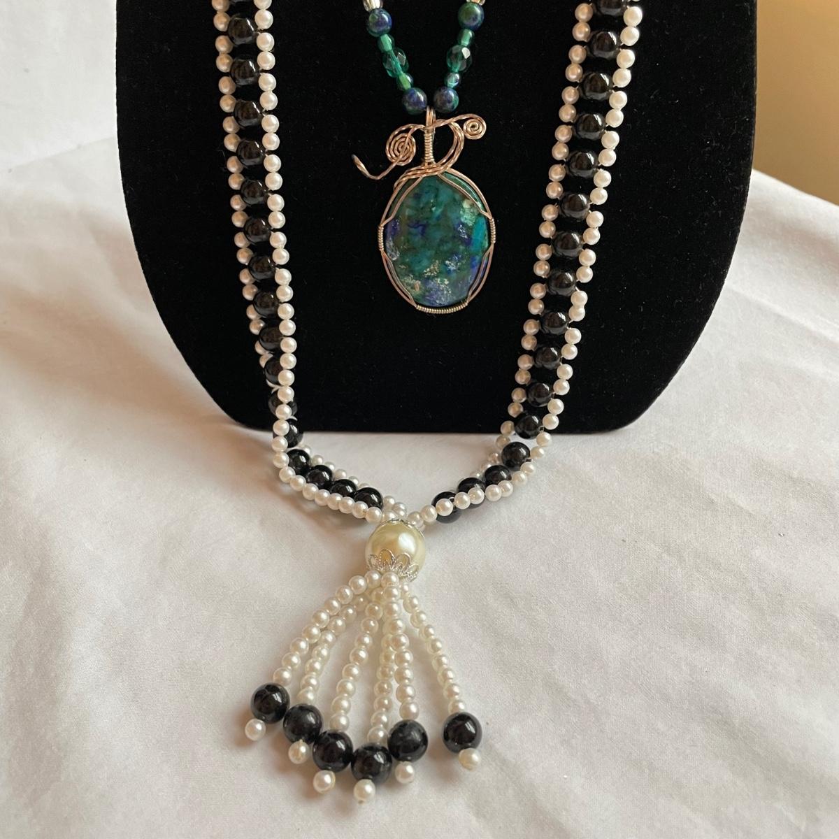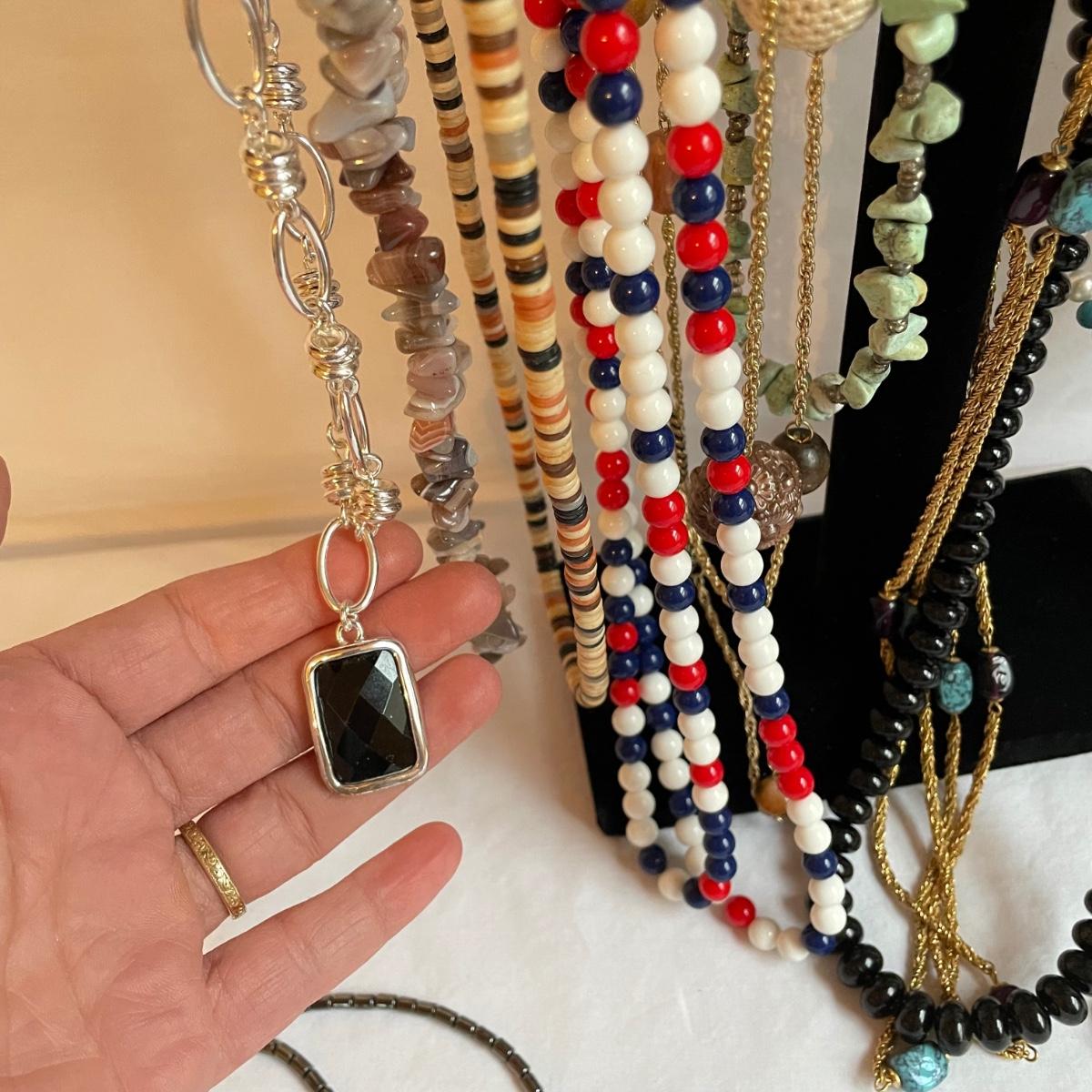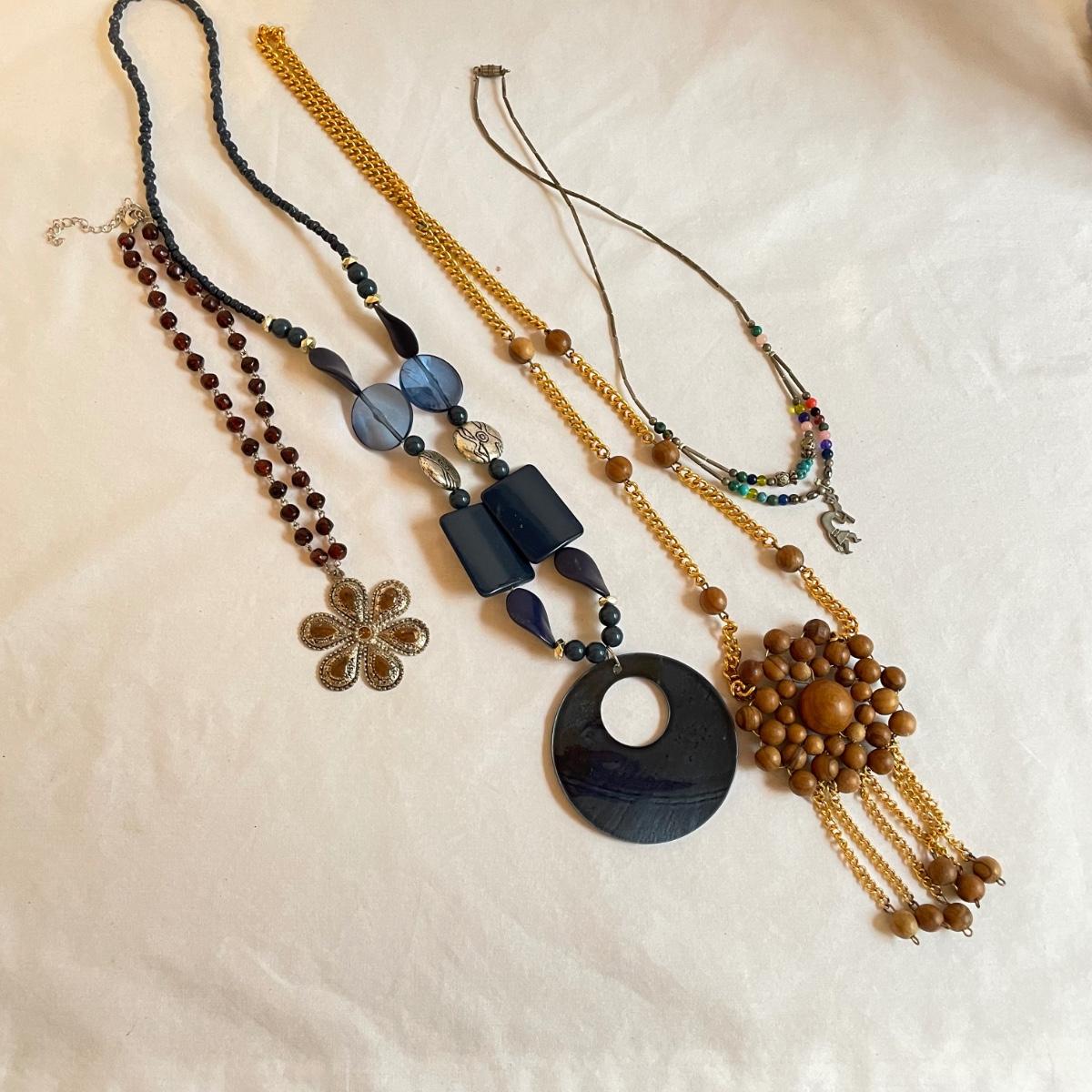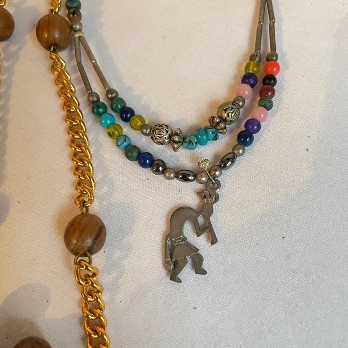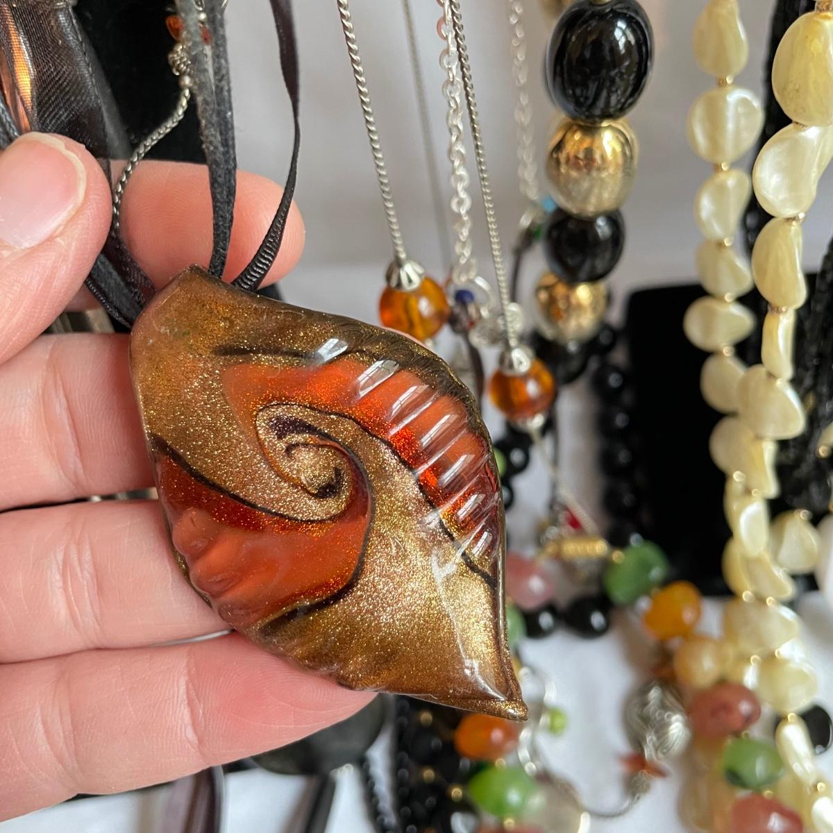 Large selection of beaded necklaces created from shell, metal, stones, resin and more. Lot includes around 60 necklaces, mostly long in length - more than 30”. See images. Shipping available. All sales are final. No returns or refunds. Please bid accordingly.