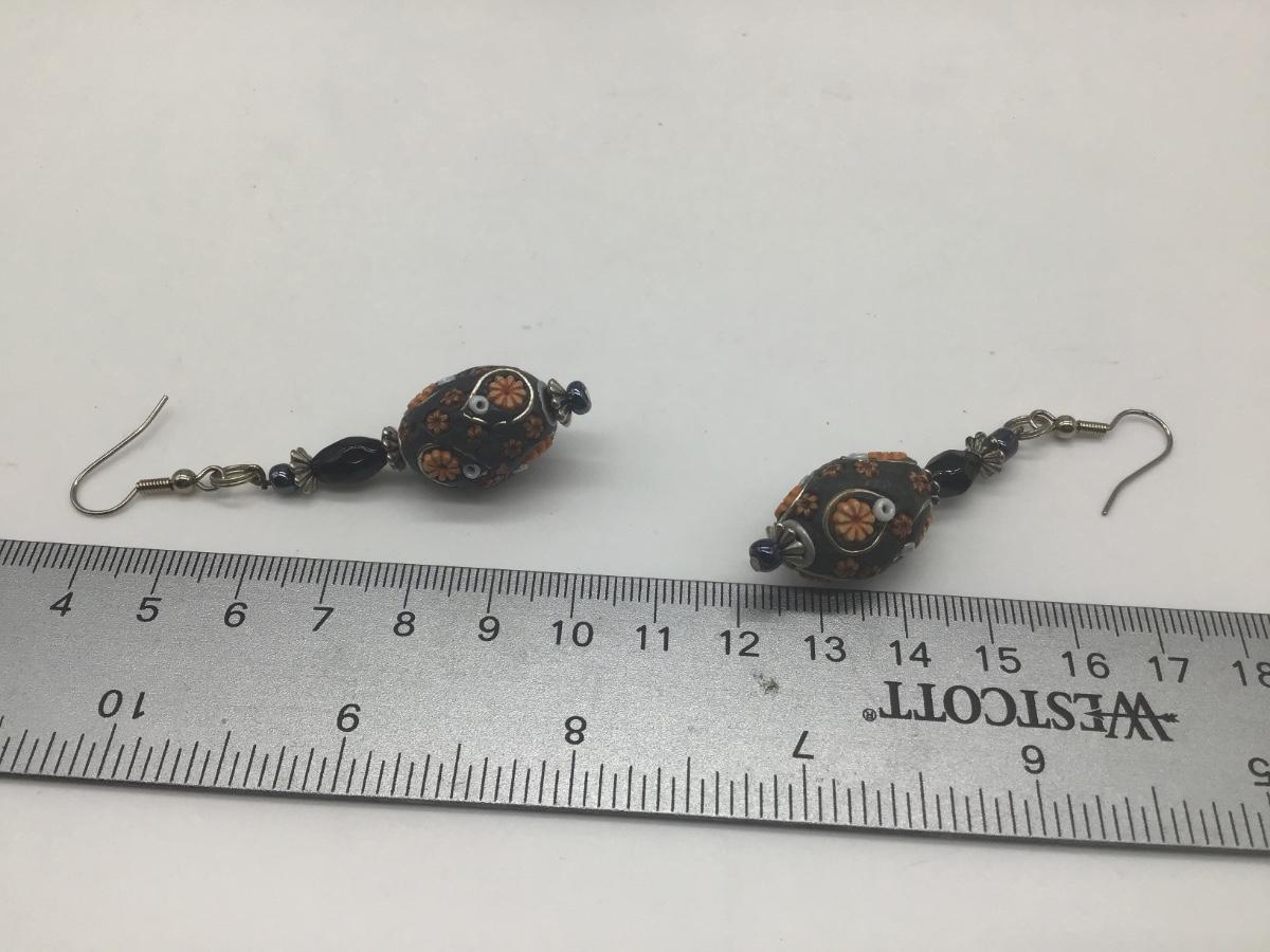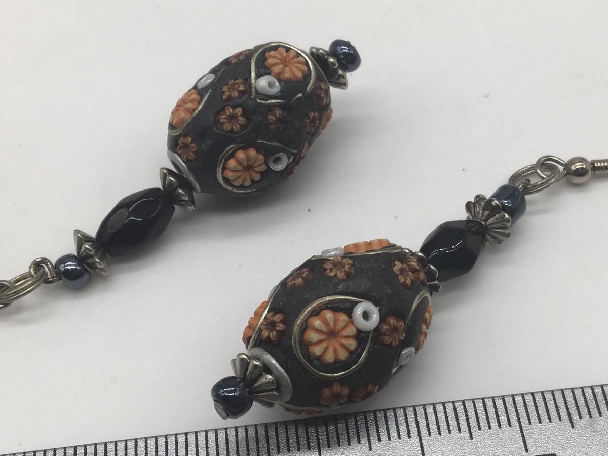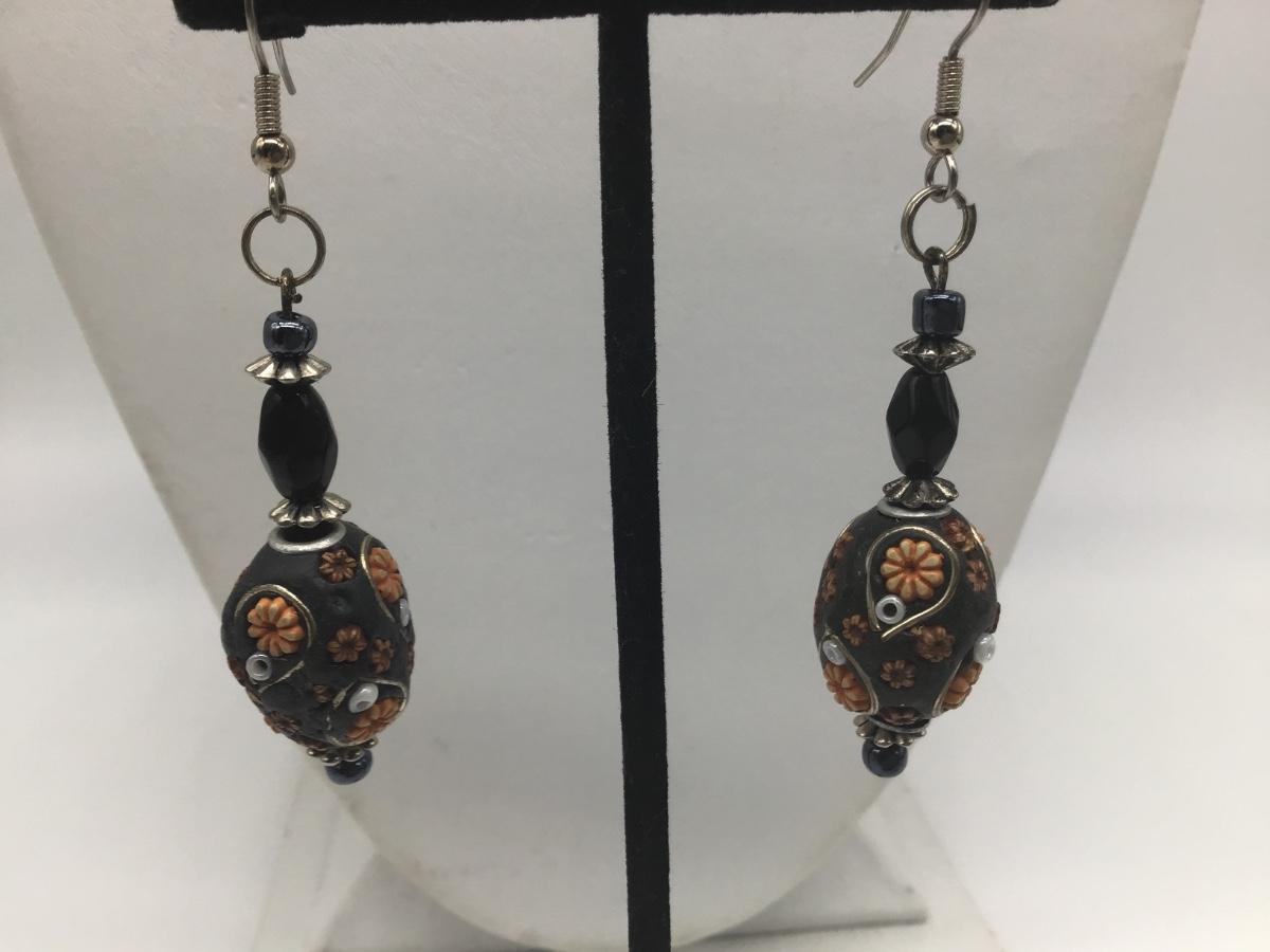 Beaded Shell Orange And Black Crafted Earrings