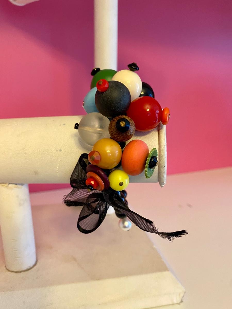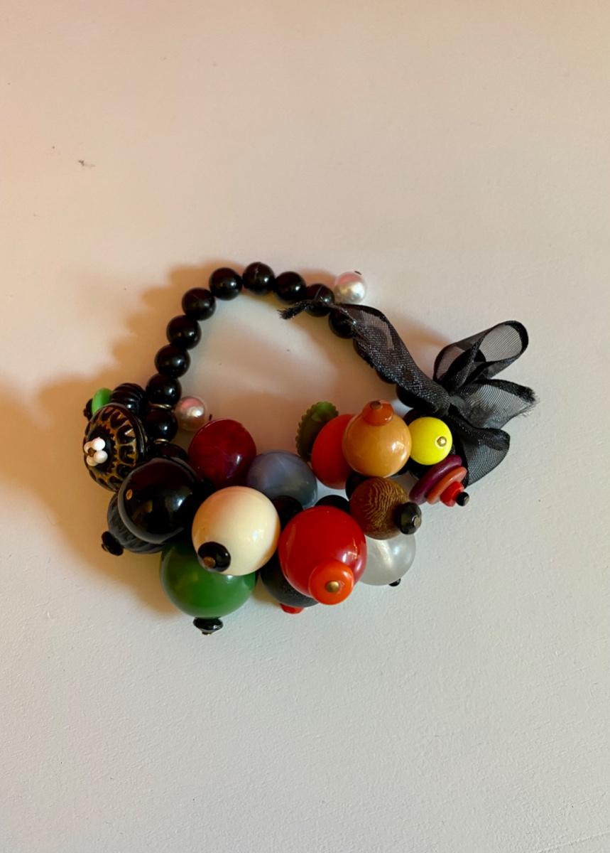 Beaded Bracelet with Colorful Bead Charms and Elastic Band