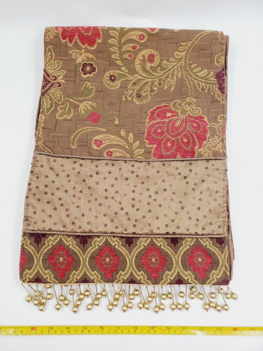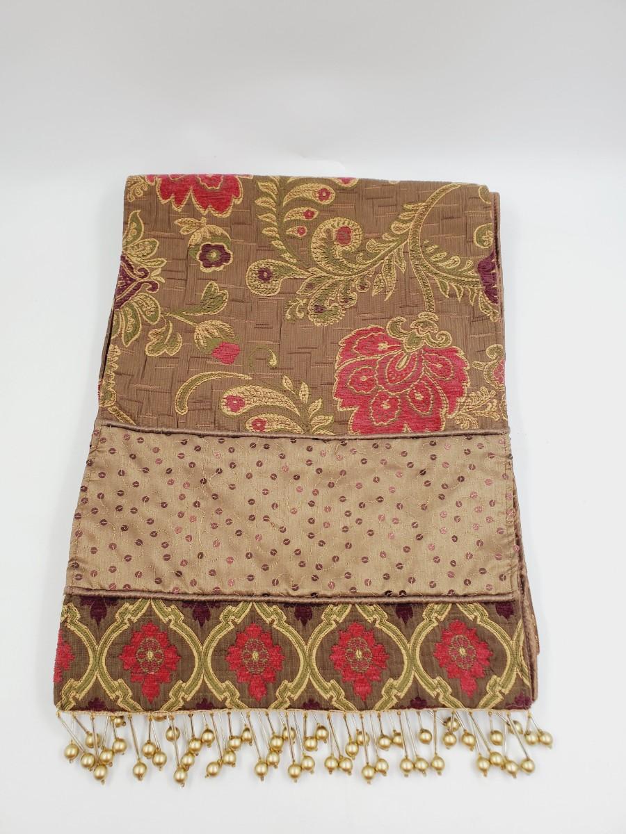 BEADED FRINGE FLORAL TABLE RUNNER