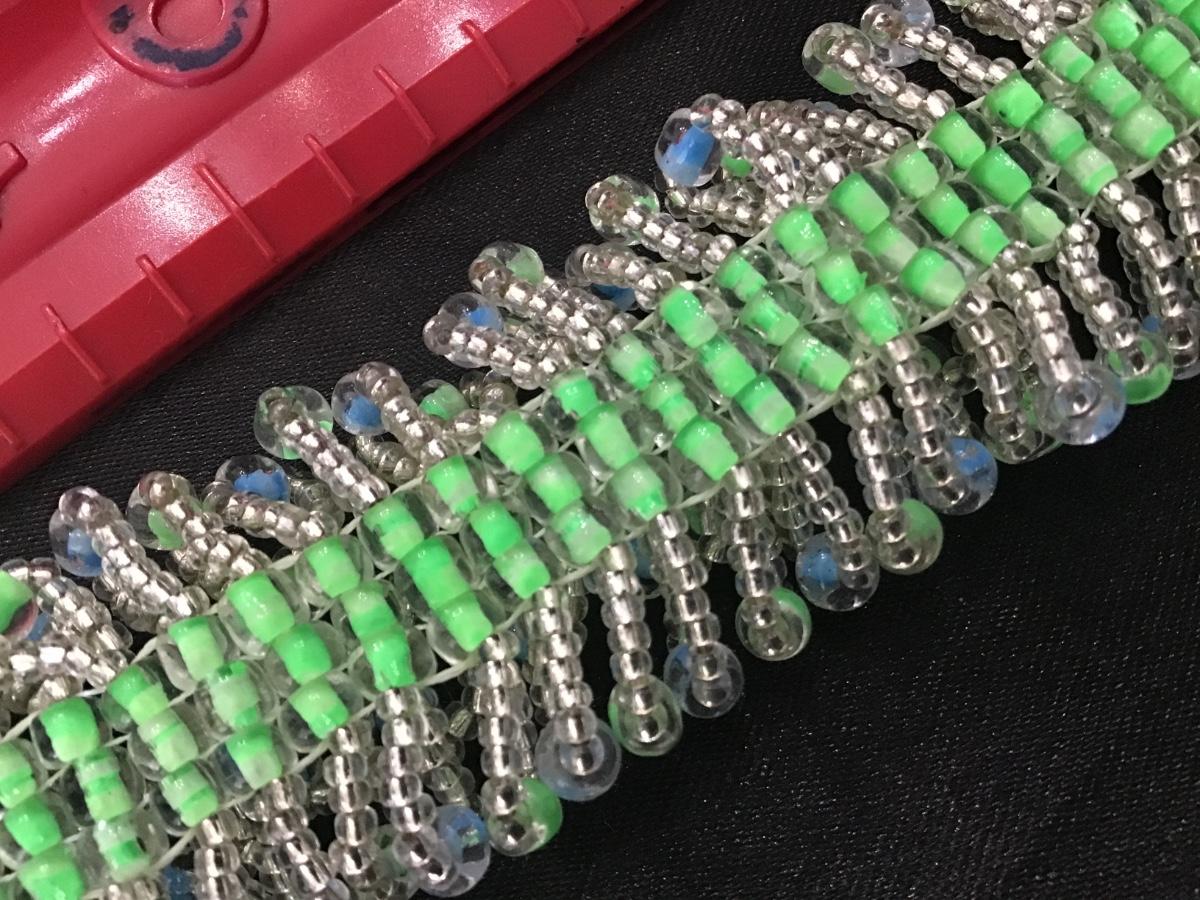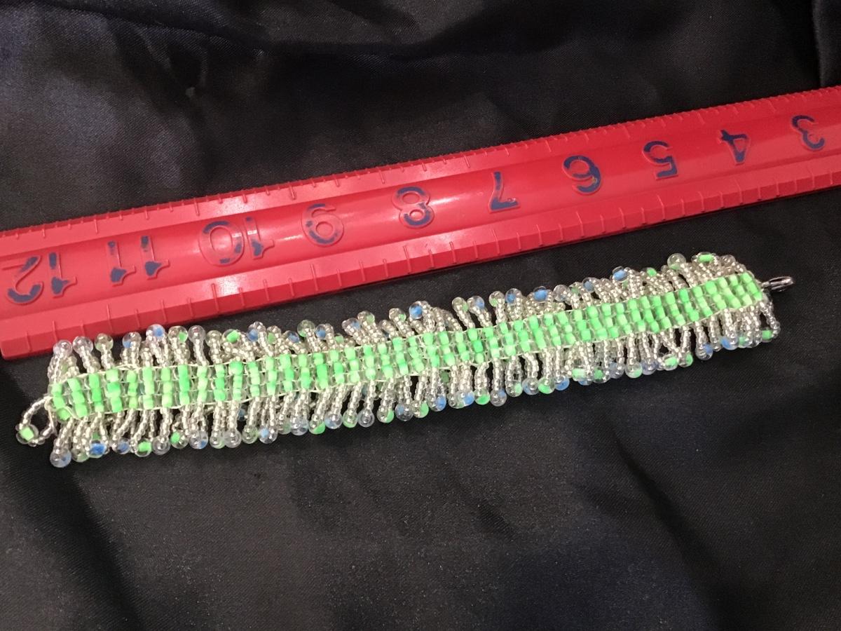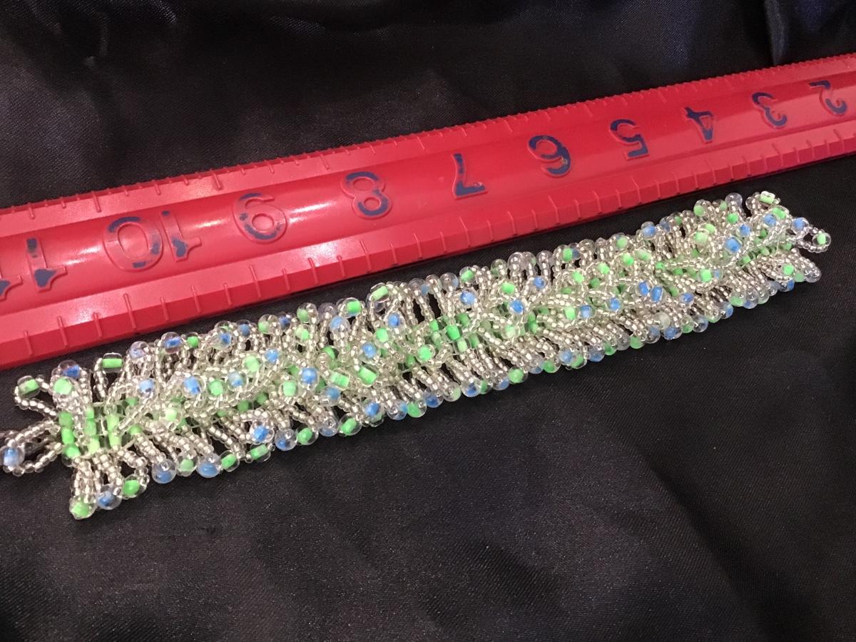 Beaded Glass Bracelet Green Blue Handmade Jewelry