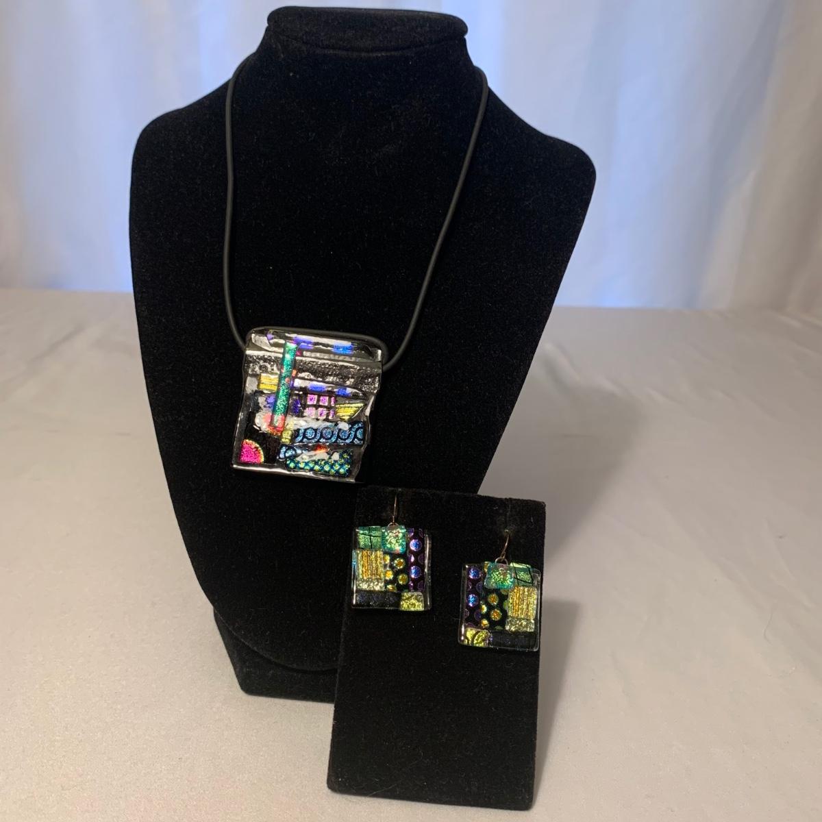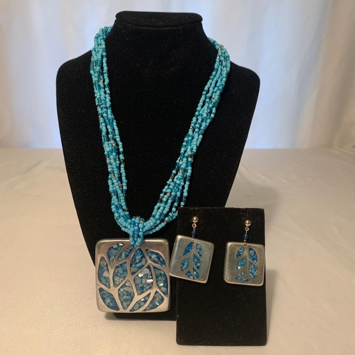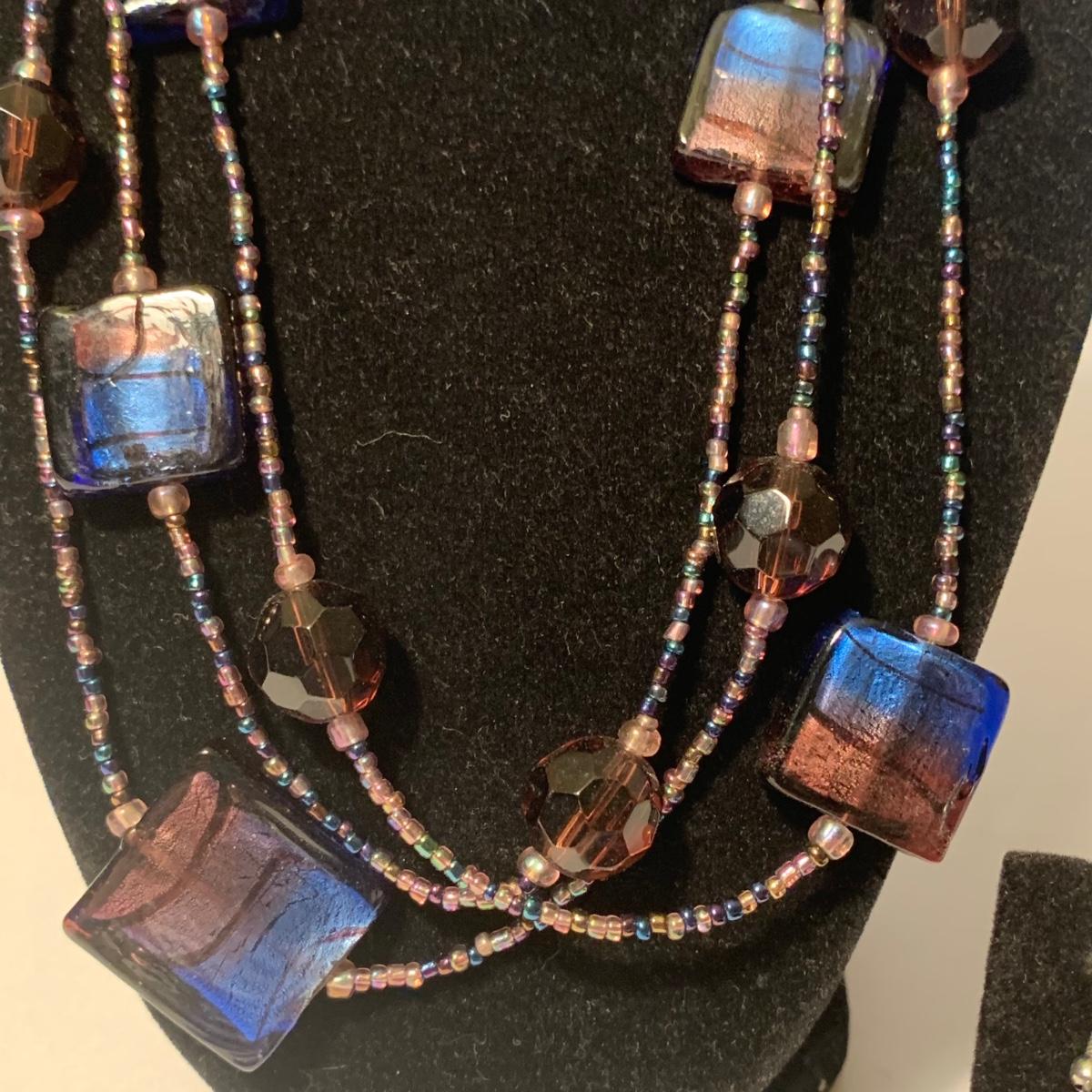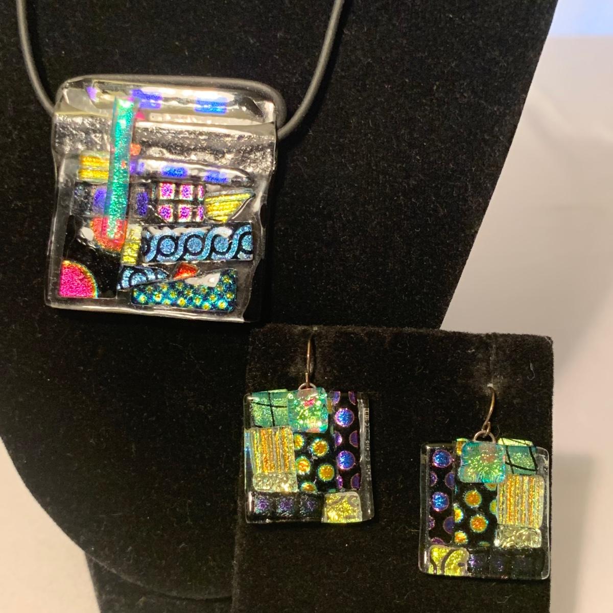 Twelve beaded jewelry sets, all in pouches to keep them organized. Each set has a necklace and a pair of pierced earrings. One set has two pairs of earrings. There are pearls, dichroic glass beads, metal beads, plastic beads, and more. The longest necklace is approximately 32” and the shortest is about 17”. One clasp will need a small and easy repair (see pictures). Shipping available.