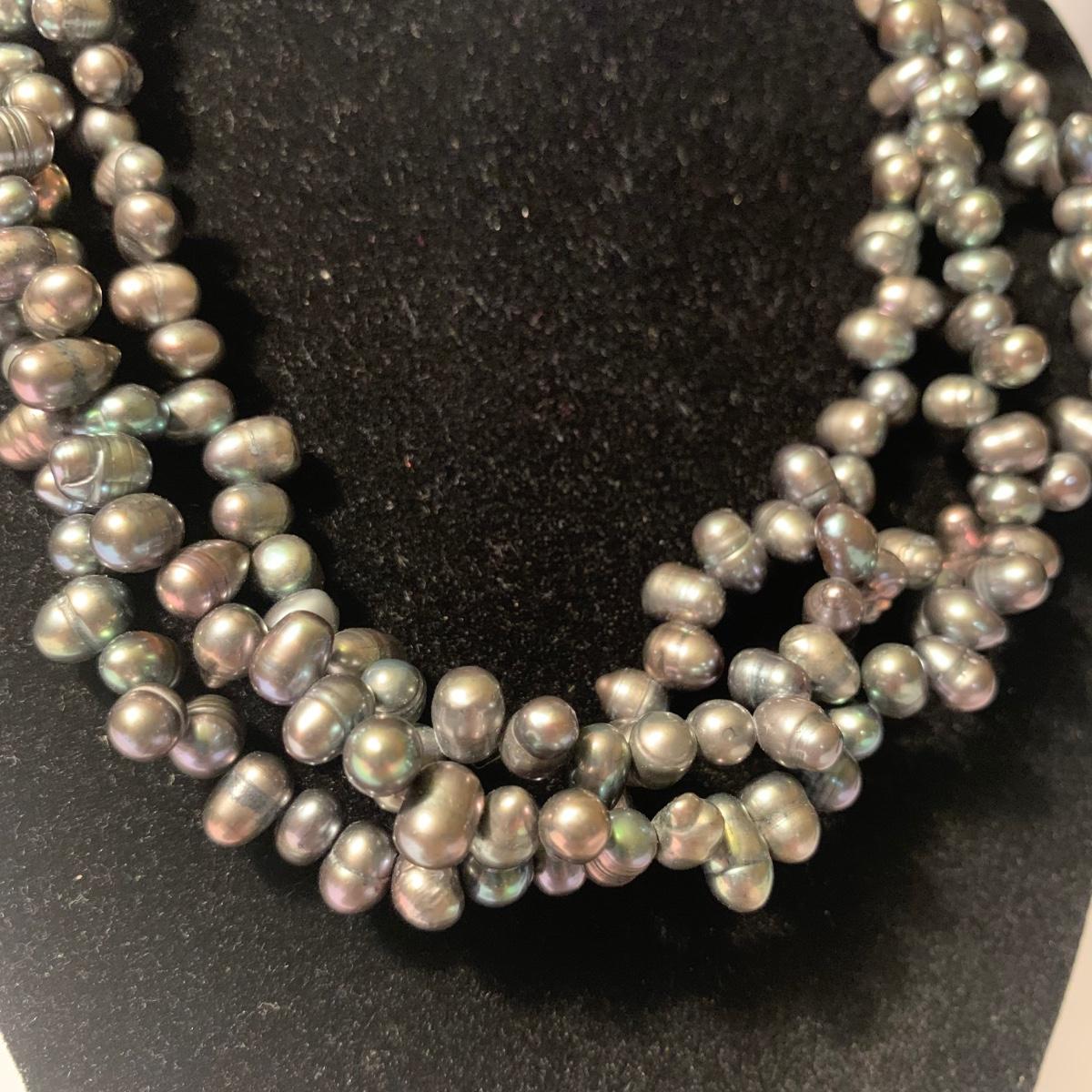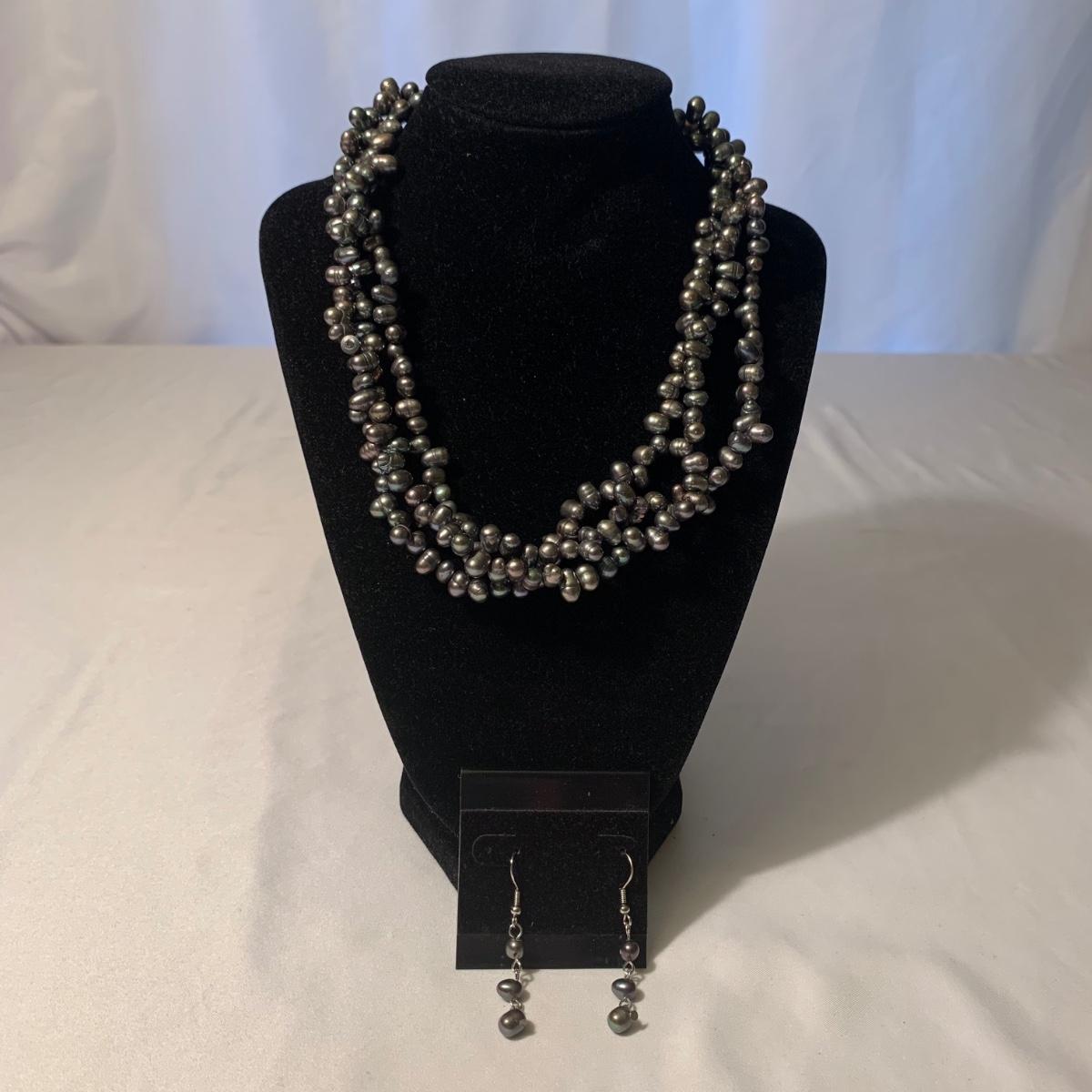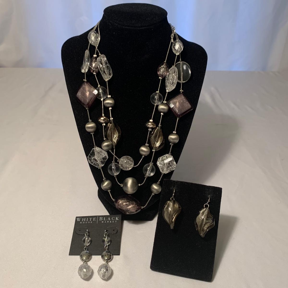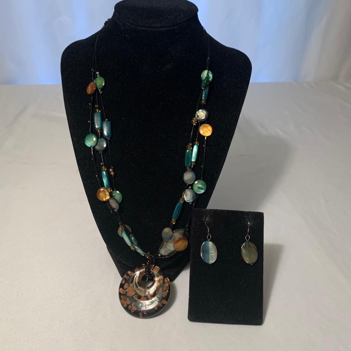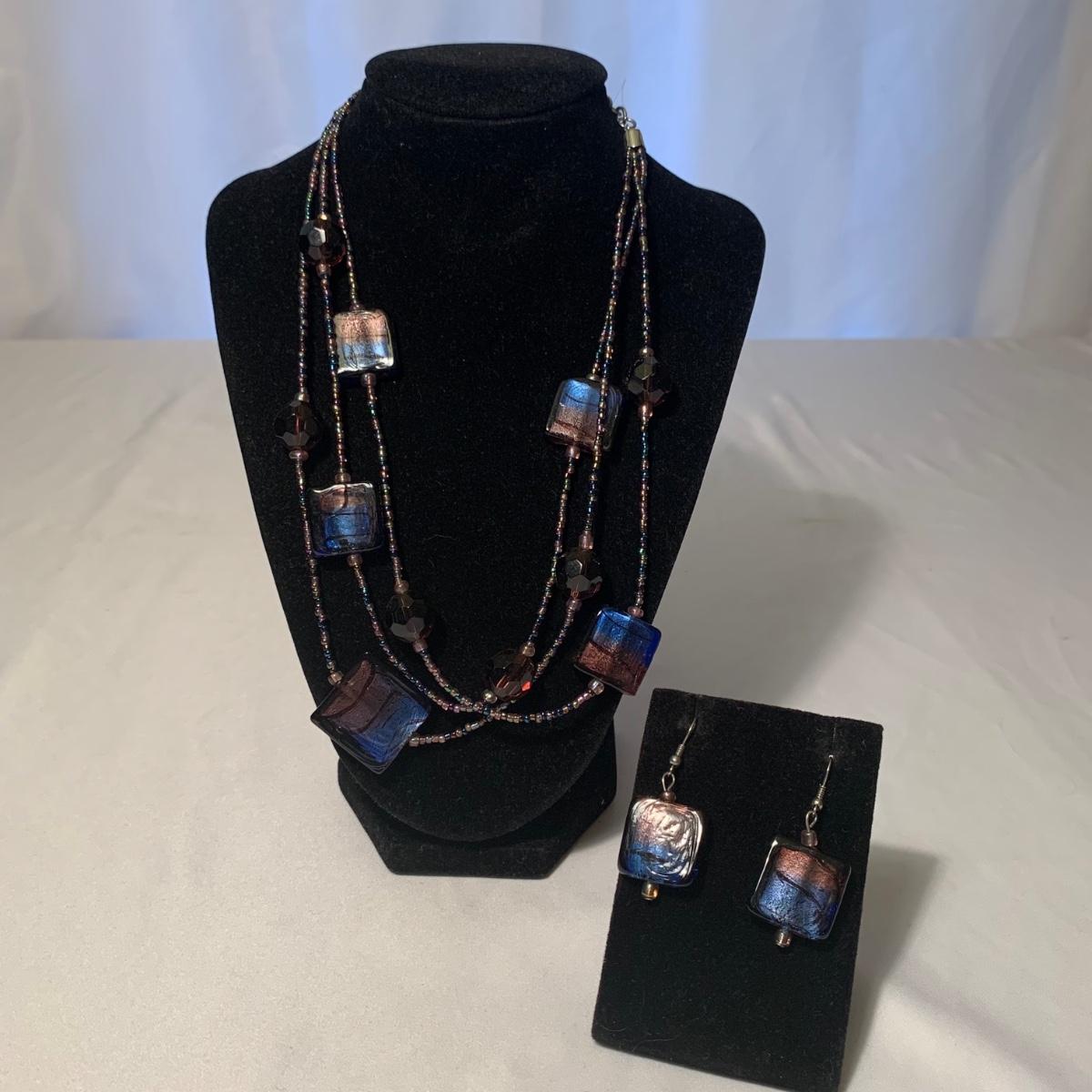 Twelve beaded jewelry sets, all in pouches to keep them organized. Each set has a necklace and a pair of pierced earrings. One set has two pairs of earrings. There are pearls, dichroic glass beads, metal beads, plastic beads, and more. The longest necklace is approximately 32” and the shortest is about 17”. One clasp will need a small and easy repair (see pictures). Shipping available.
