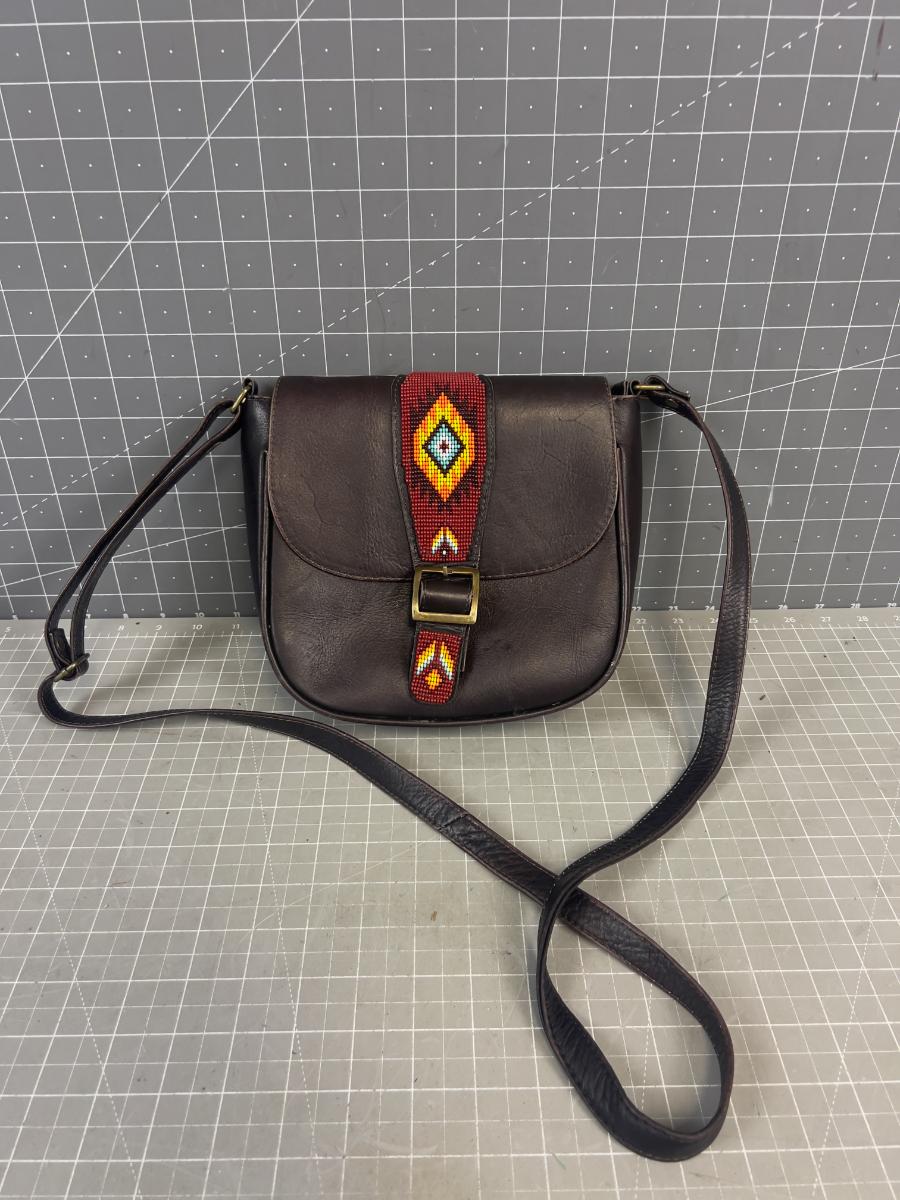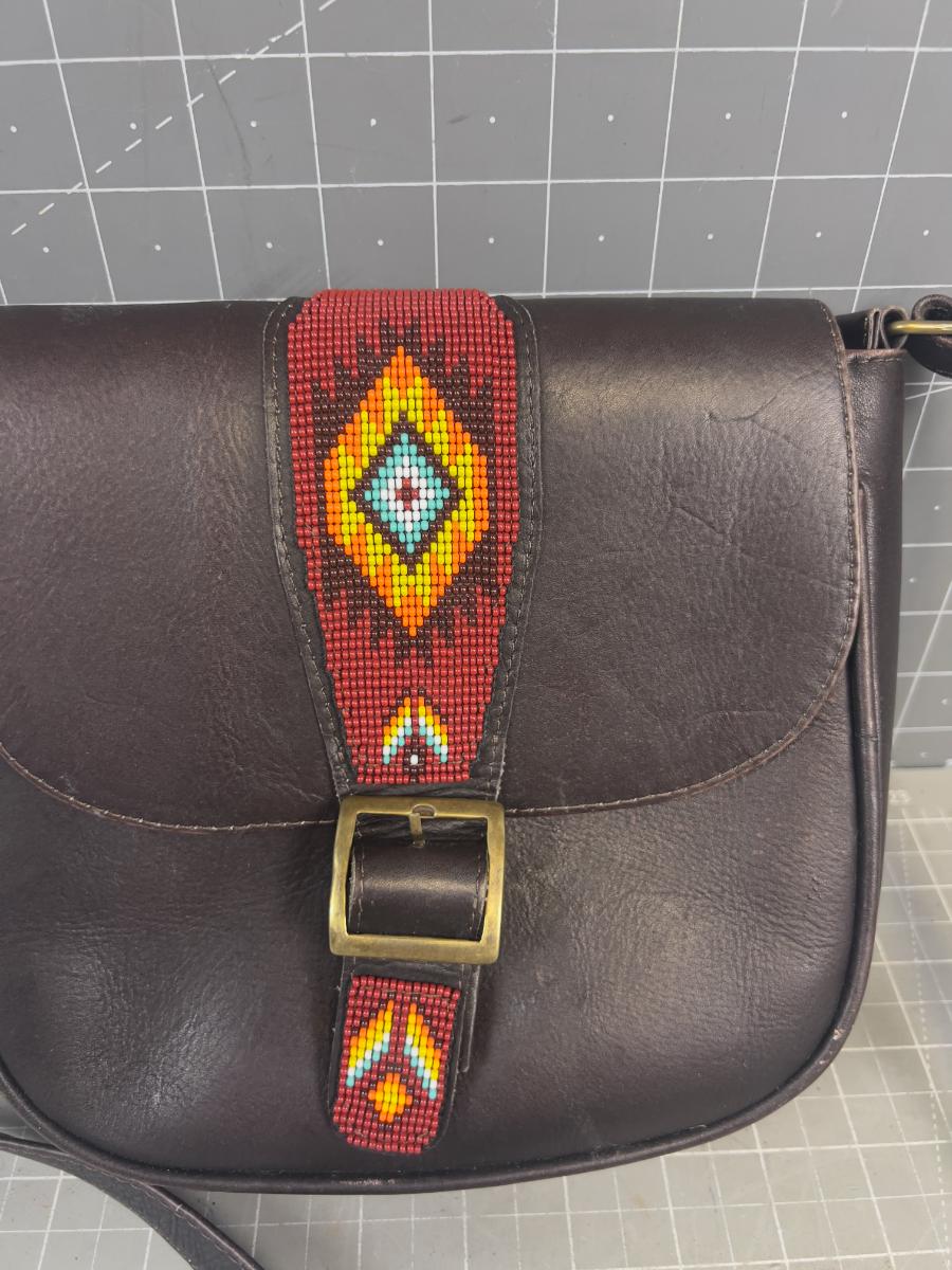 Good Usable Condition. Dark Brown with Red Orand Yellow Beads.