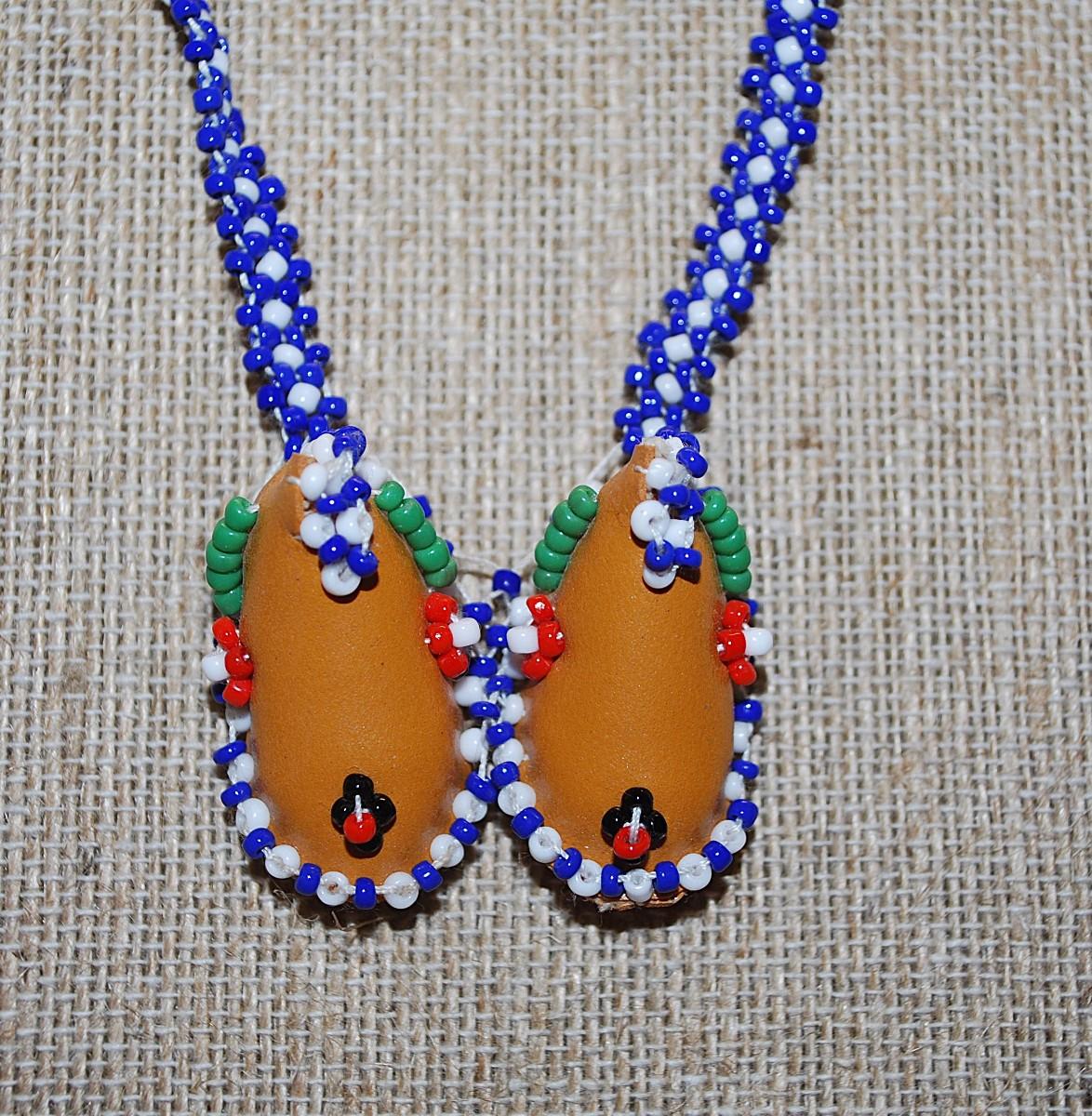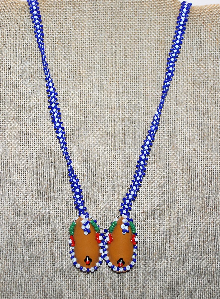 Beaded Moccasin Style PENDANT (1½" x 1¼") on a Blue & White NECKLACE CHAIN 24" L