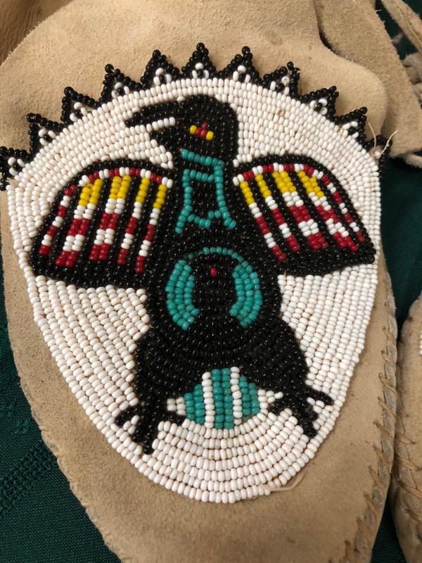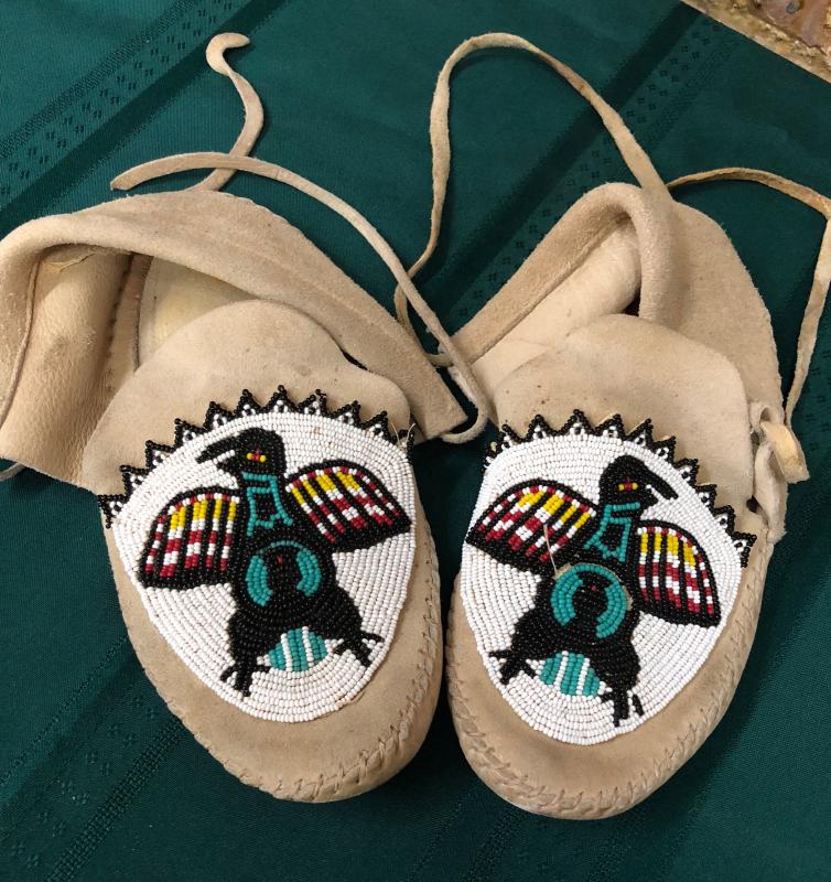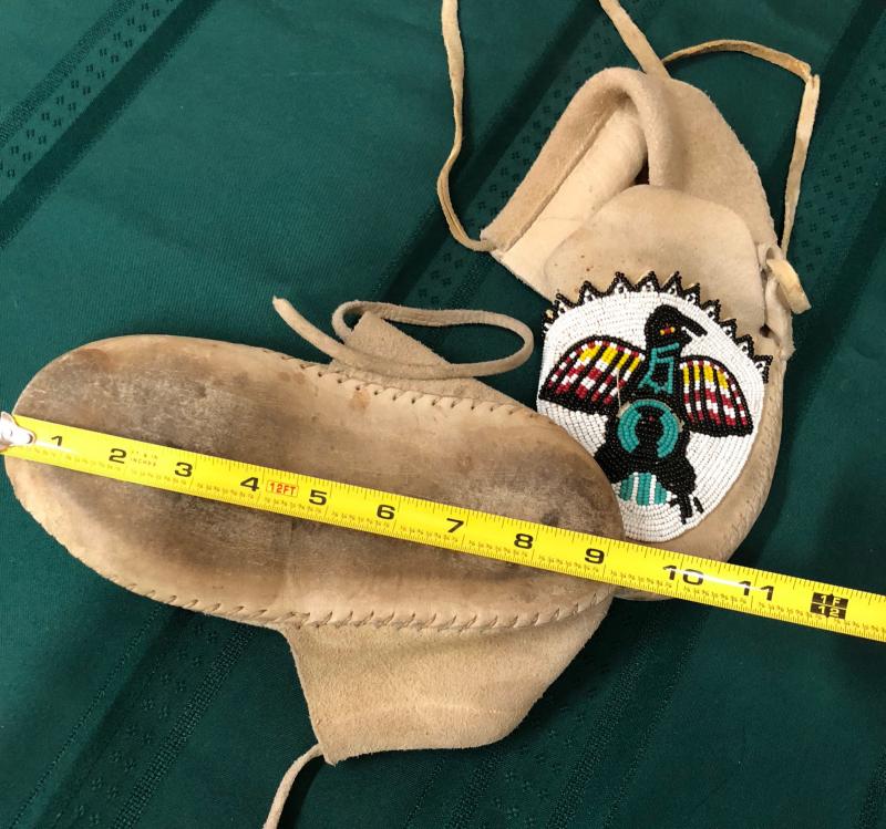 In very good condition here are a pair of nicely beaded Native American style leather moccasins...9" long...