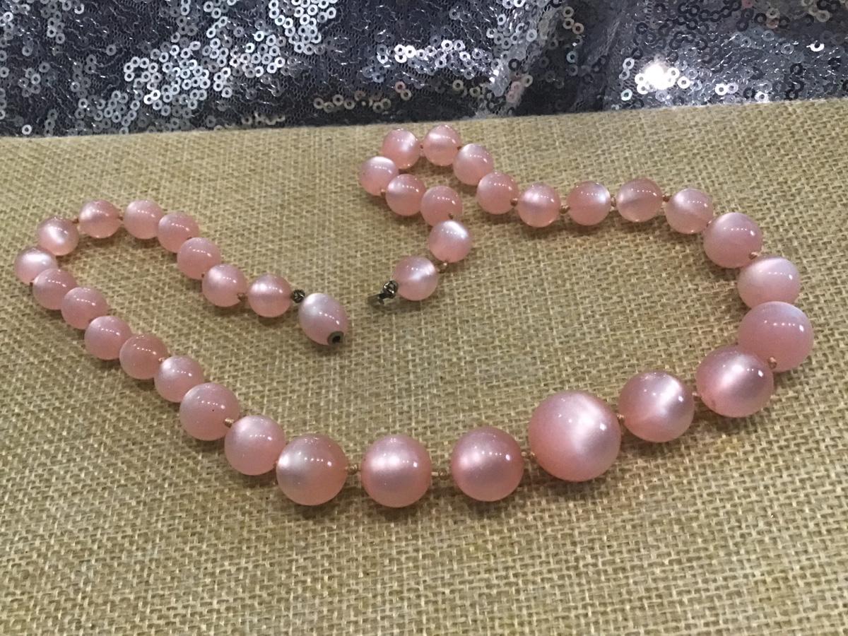 Beaded Moonglow Necklace Vtg Pink Graduated Acrylic Box Clasp