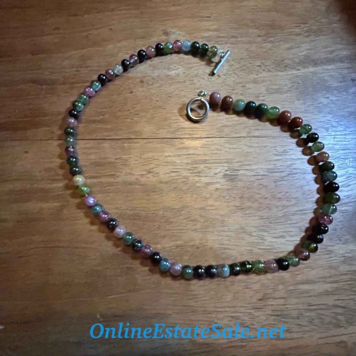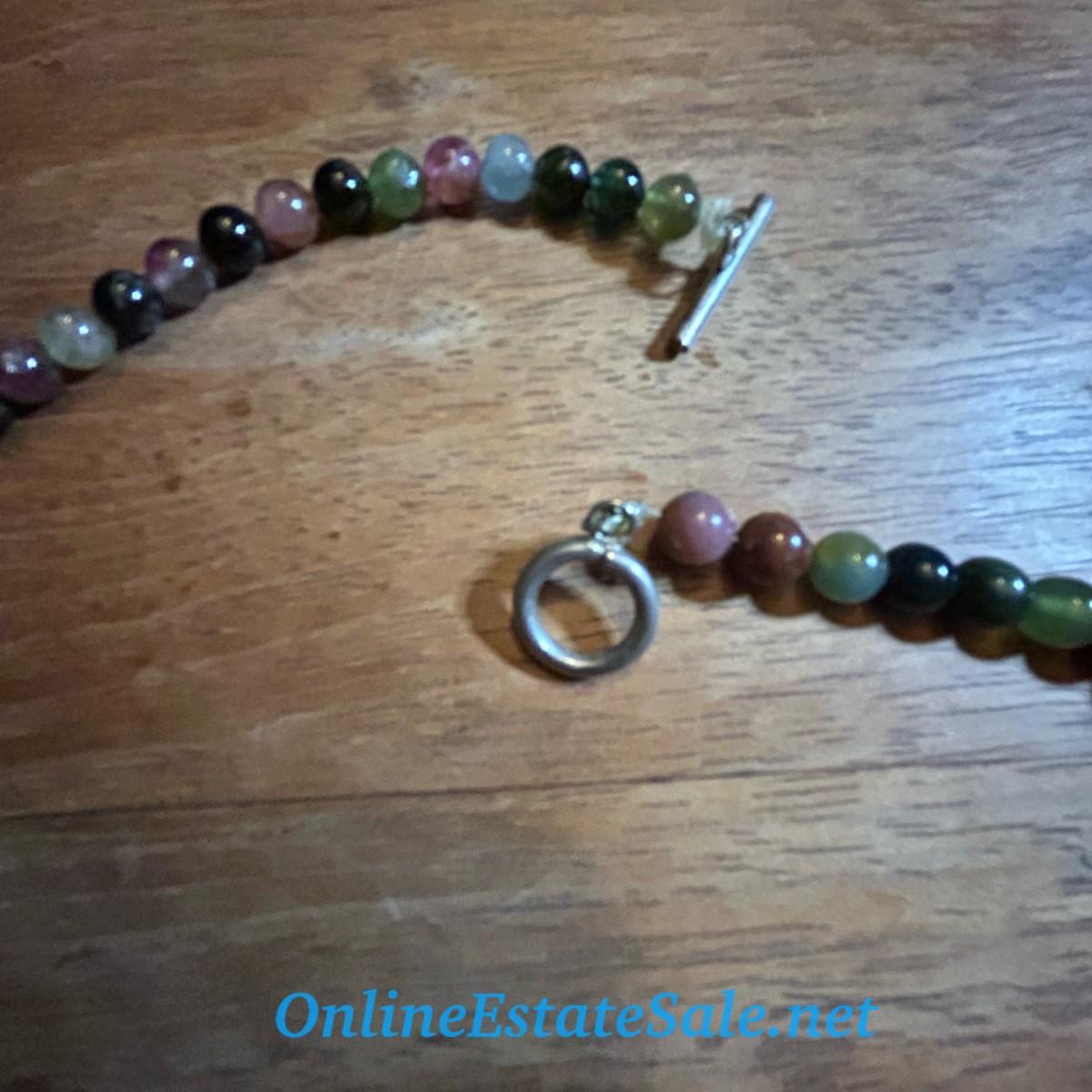 16in Multicolored Glass Beaded Necklace with Silver Colored Toggle Clasp