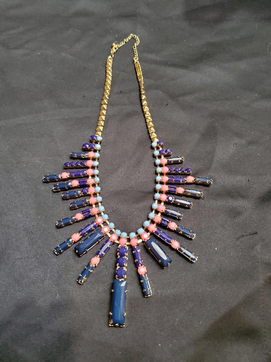 18" Beaded Dangle Necklace with Extender. Blues, Pinks, Purples