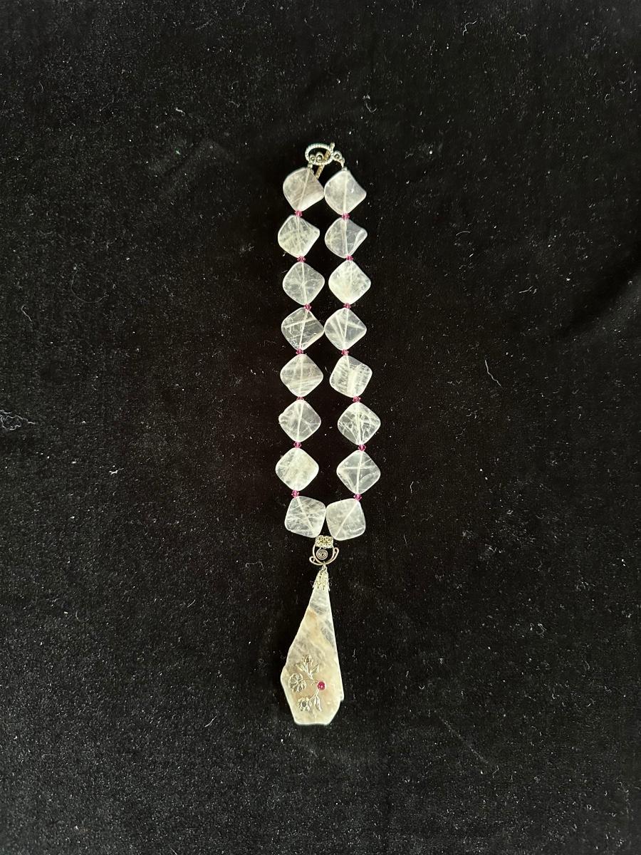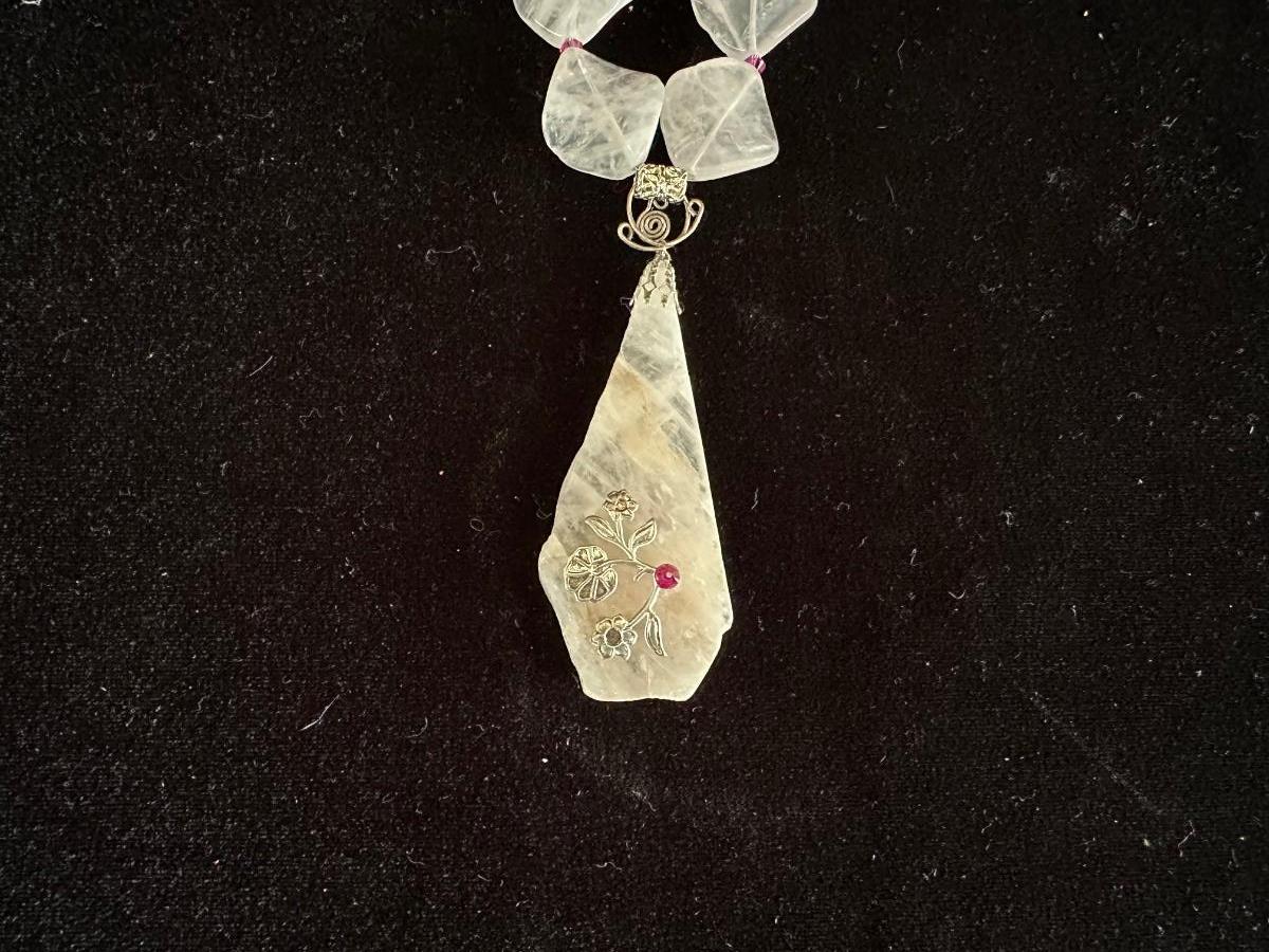 BEADED NECKLACE W/STONE PENDANT