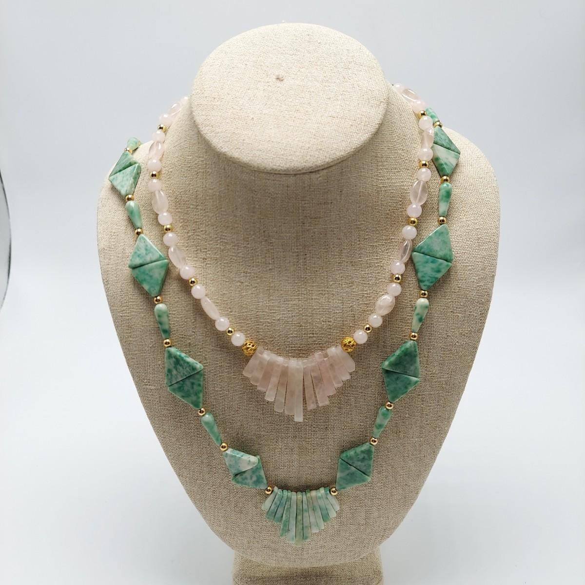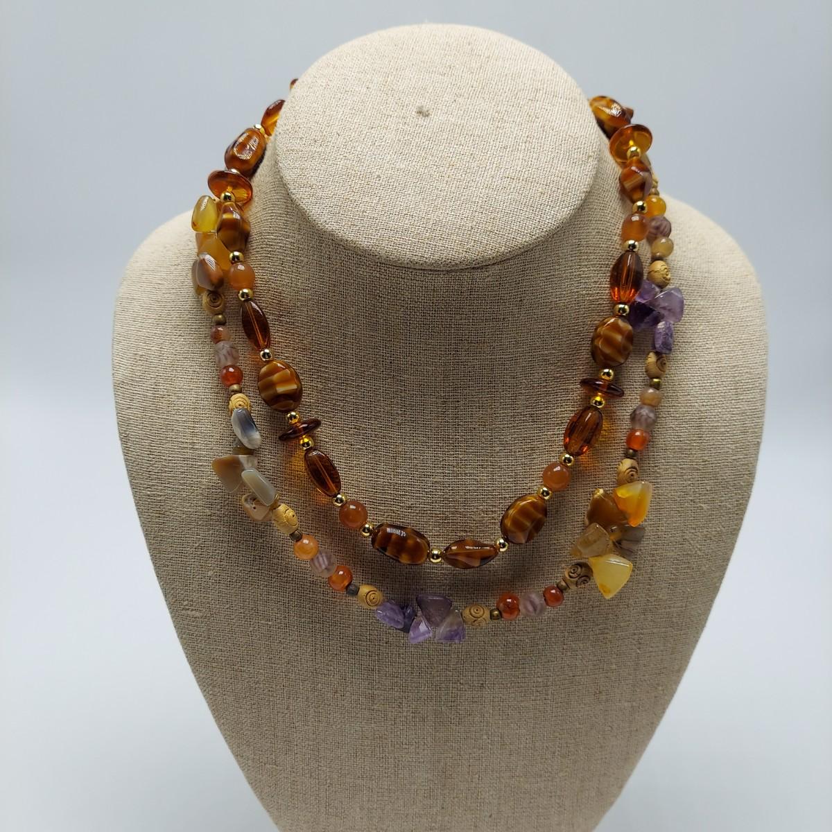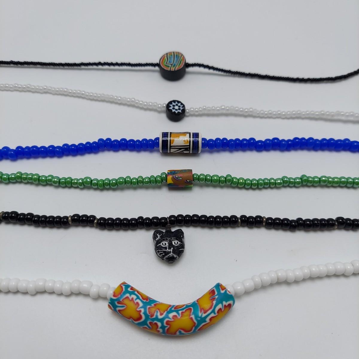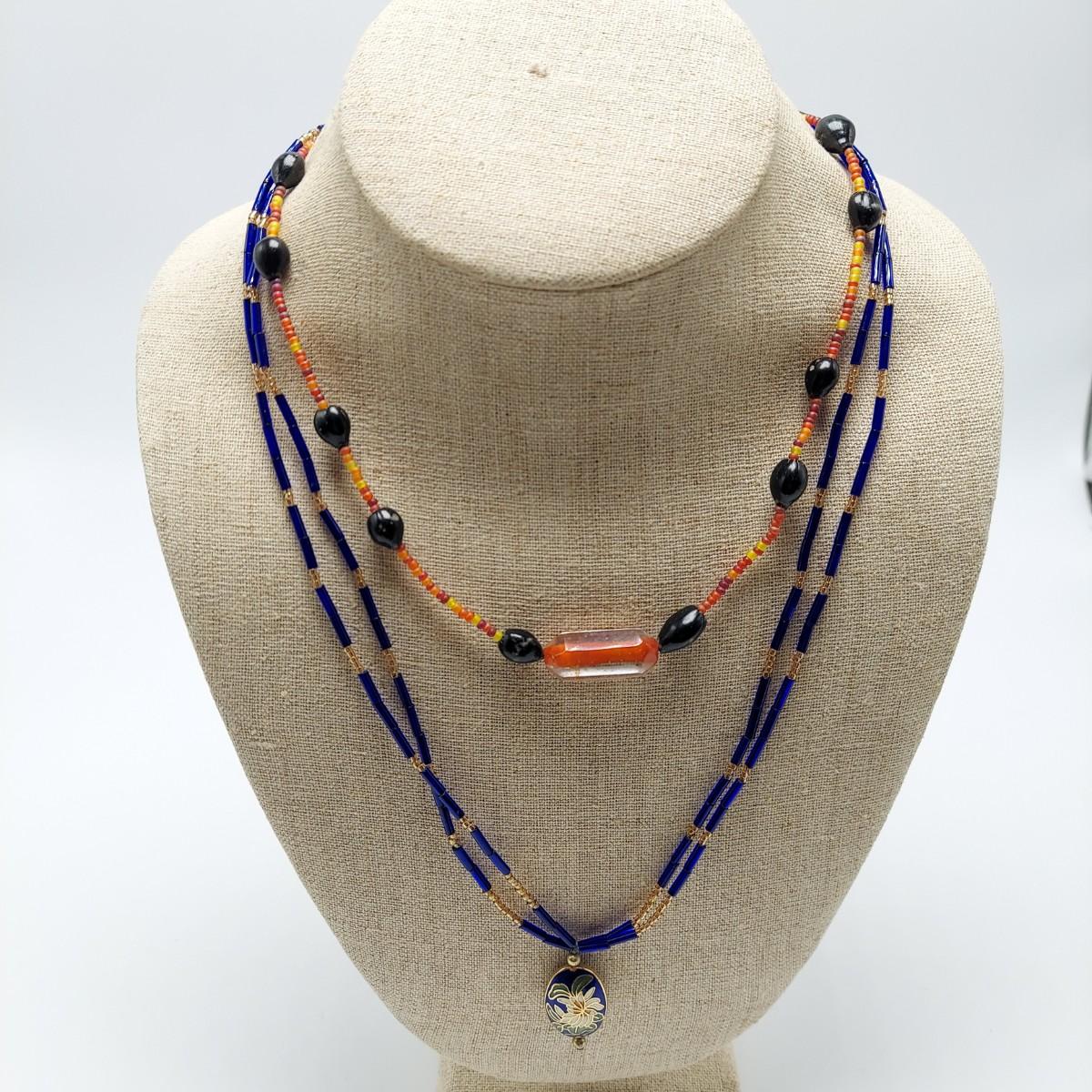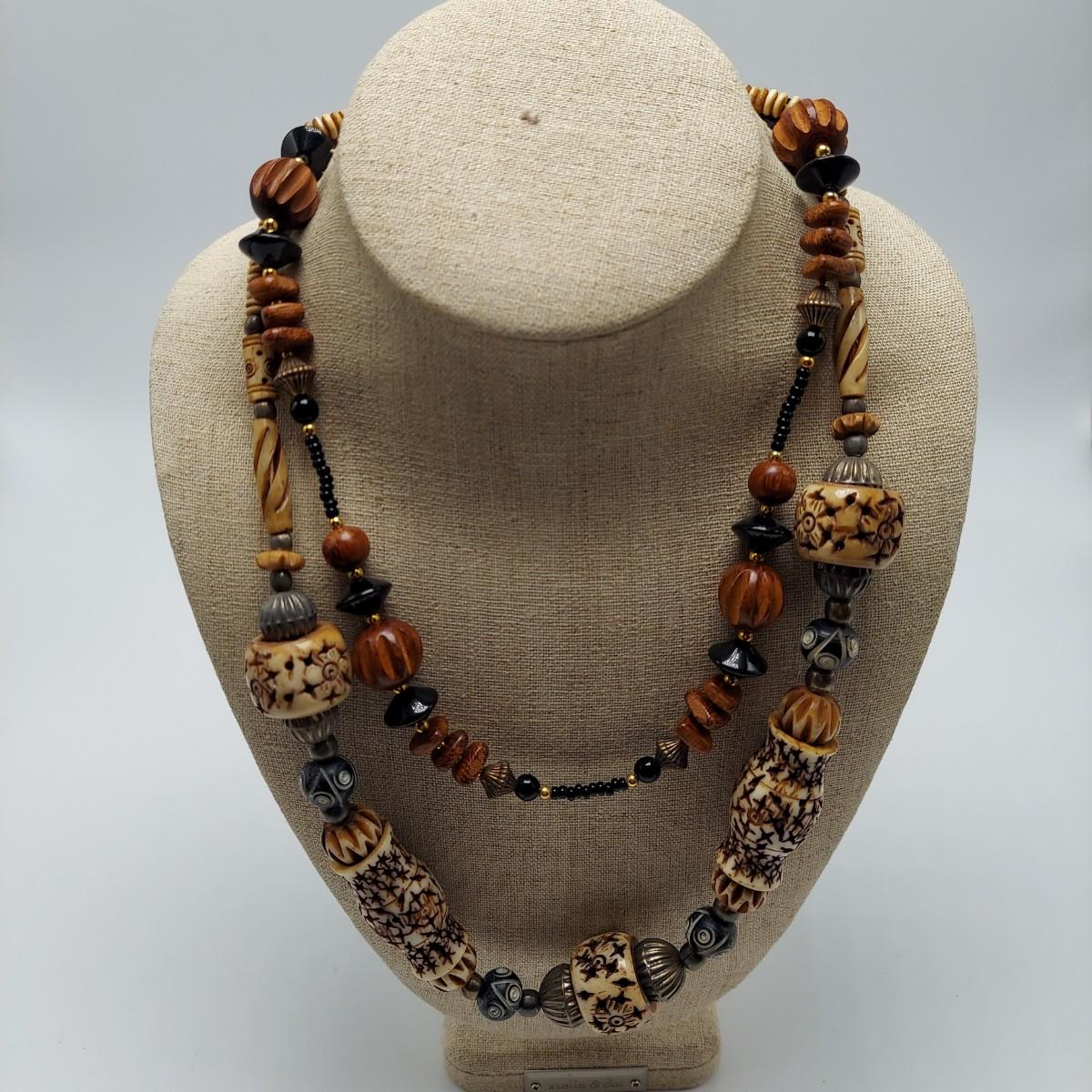 Lot includes one pair of dangle earrings for pierced ears, four bracelets and 30+ beaded necklaces. There are several short, medium and long necklaces. They range from 15” long (shortest) to 28” long (longest). There are plastic and glass beads as well as some that appear to be stones. Please see photos for details. Shipping available. All sales are final. No returns or refunds. Please bid accordingly.