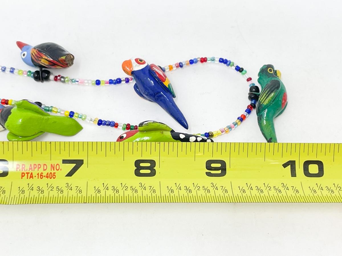 Some of the parrots have parts broken off, as shown. Approx 9.5” long, folded in half.