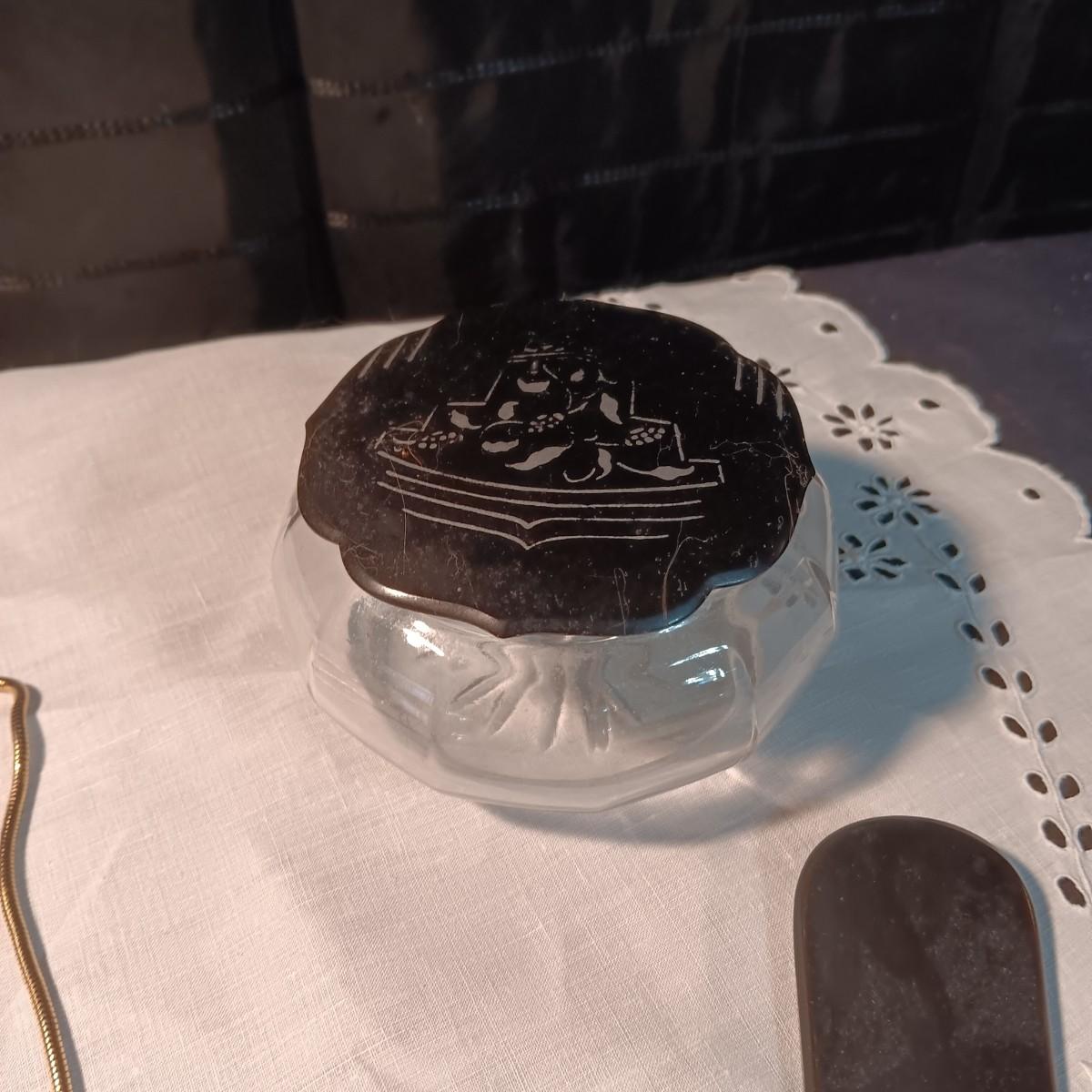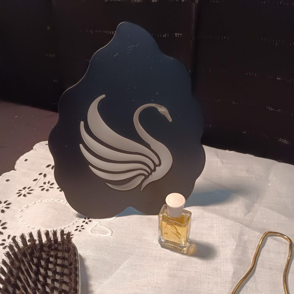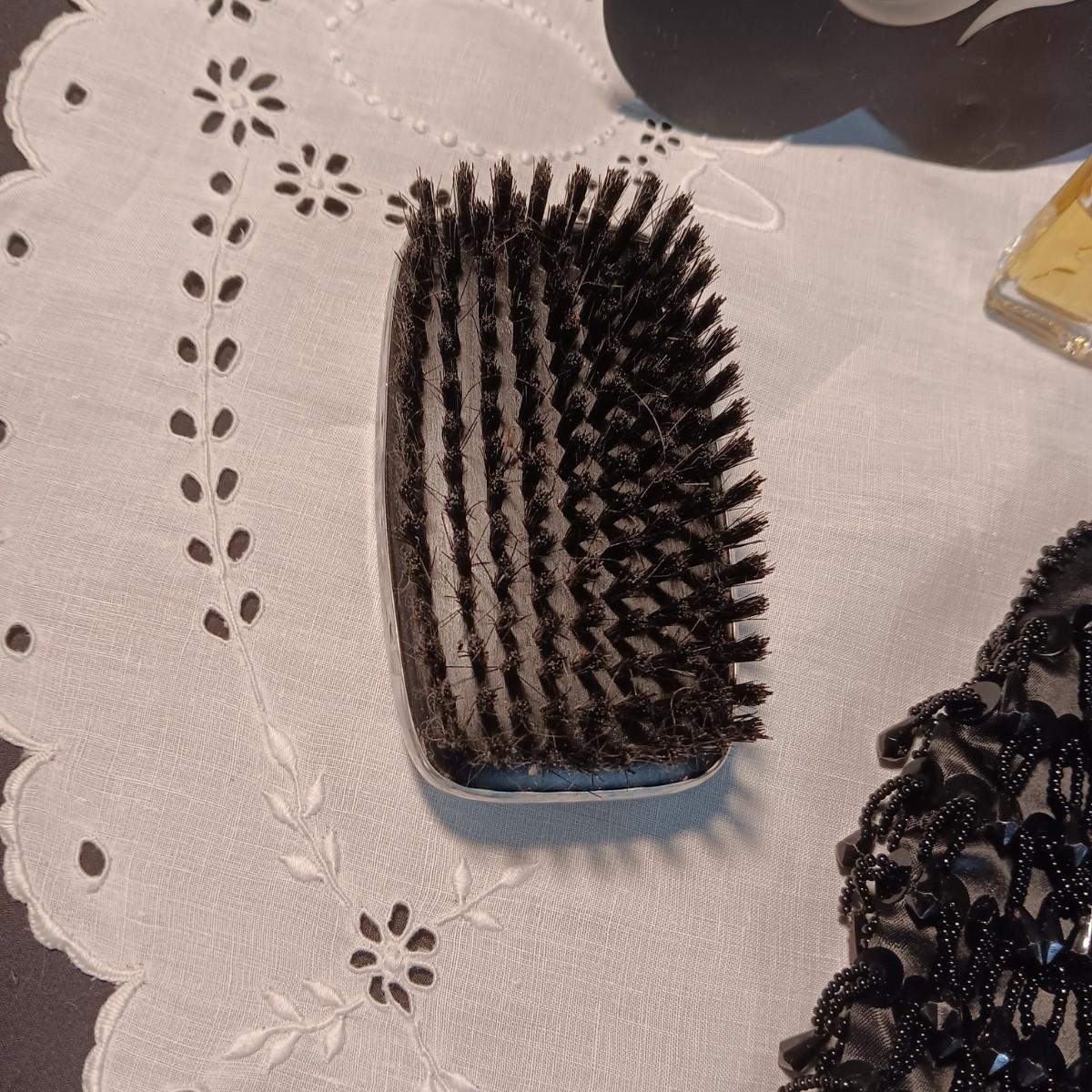 BEADED PURSE, HAND BRUSH, SHOE HORN, COTTON BALL BOWL AND SWAN CANDLE HOLDER