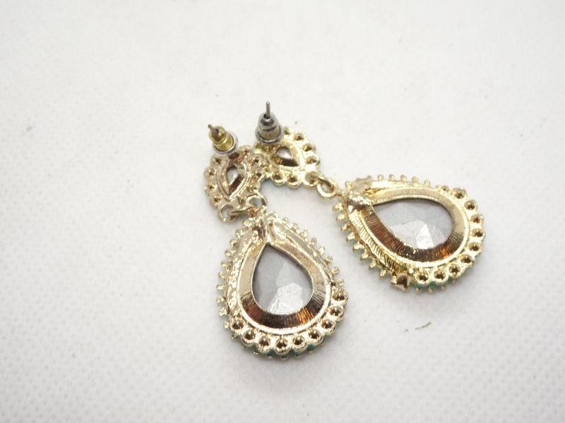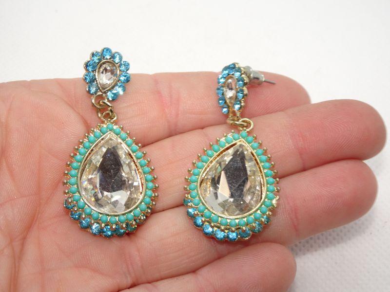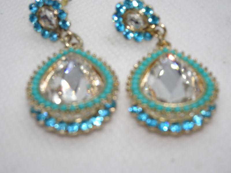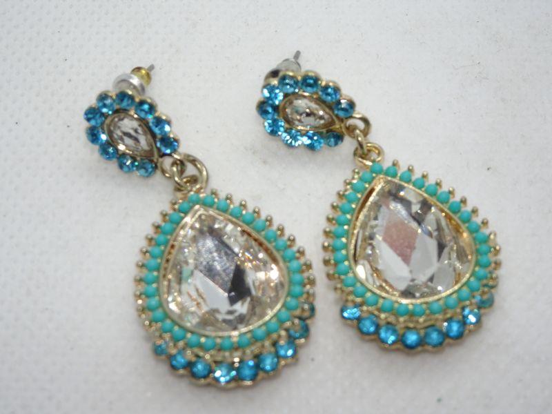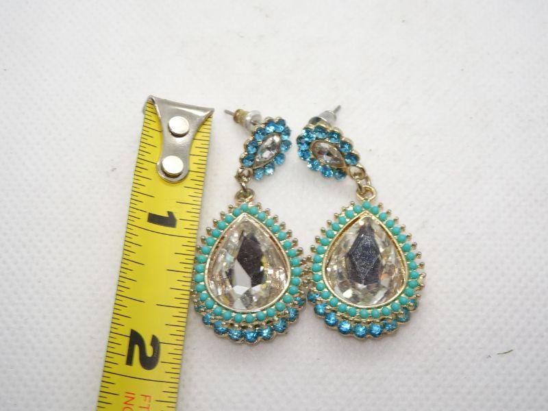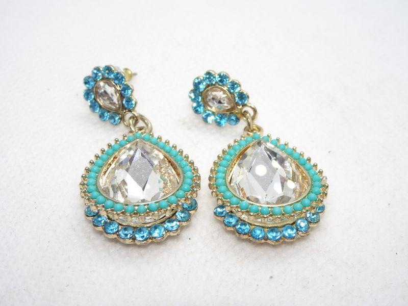 Beaded & Rhinestone Tear Drop Dangle Post Earrings