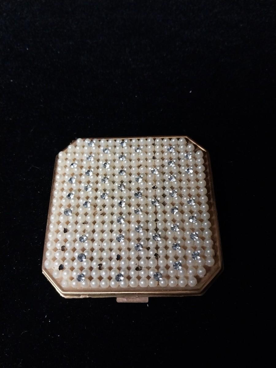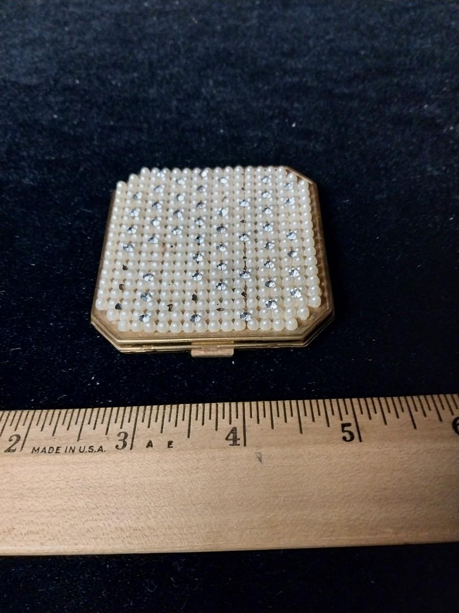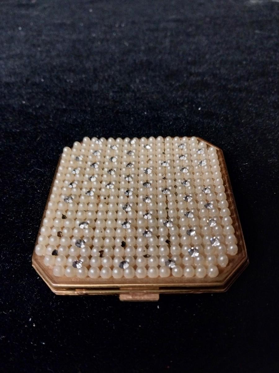 BEADED VINTAGE POWDER W/MIRROR COMPACT