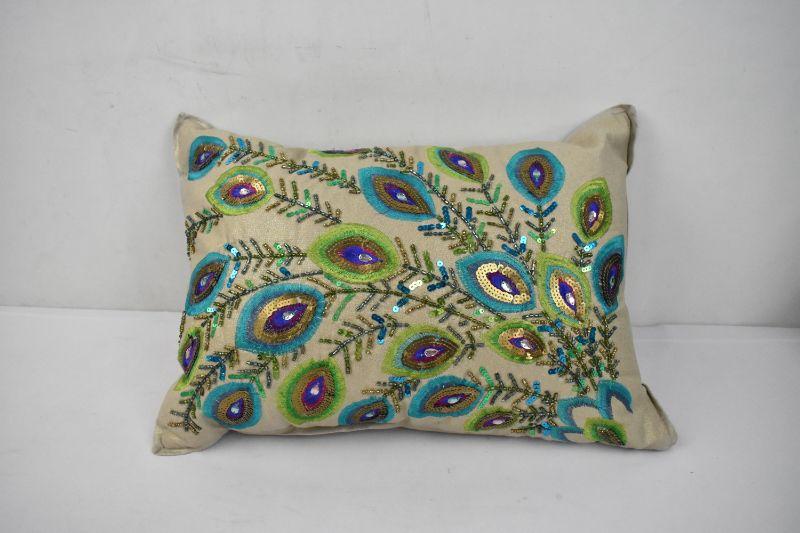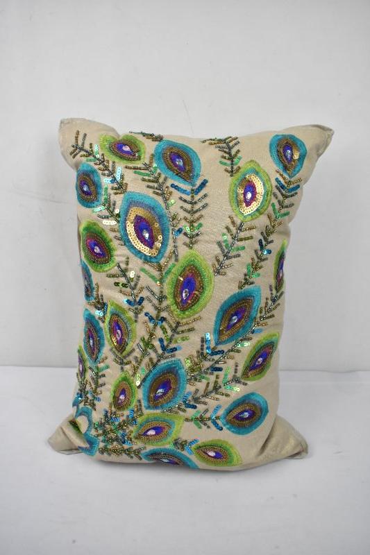 Beaded/Sequin Peacock Design Pillow 14" x 20"