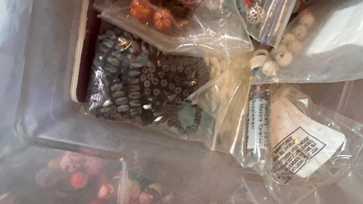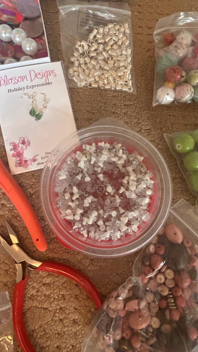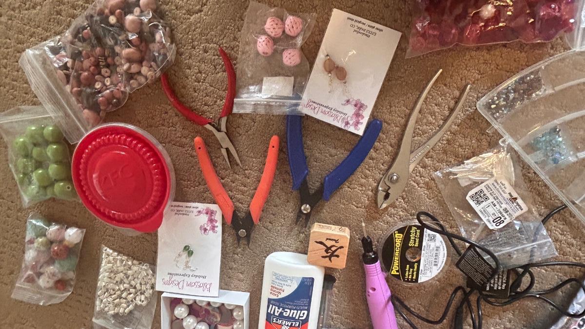 BEADS, AN ENGRAVER AND JEWELRY MAKING TOOLS