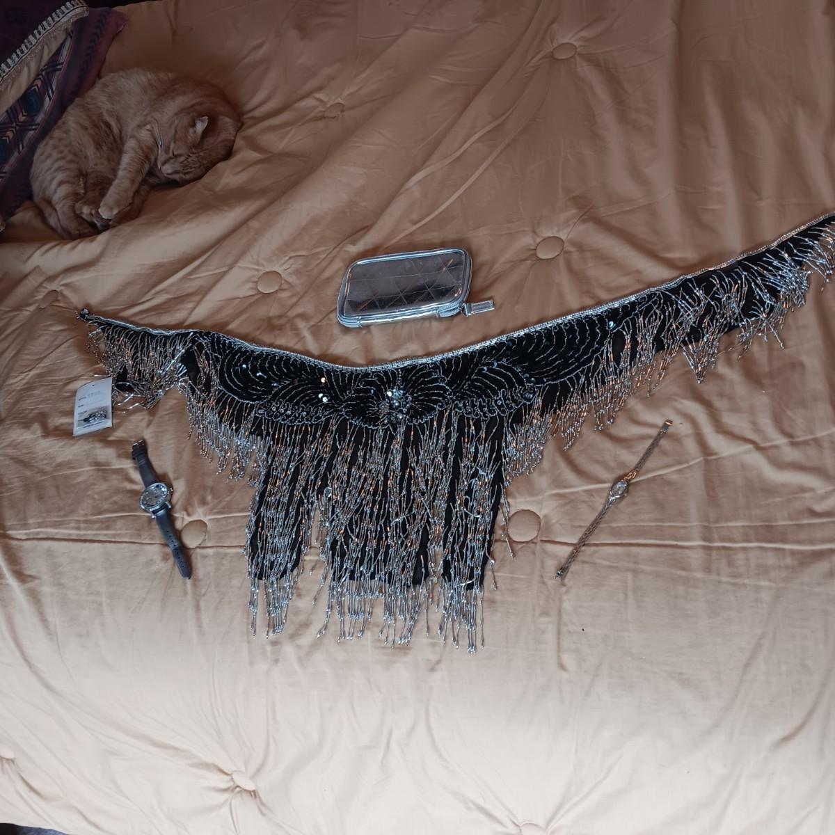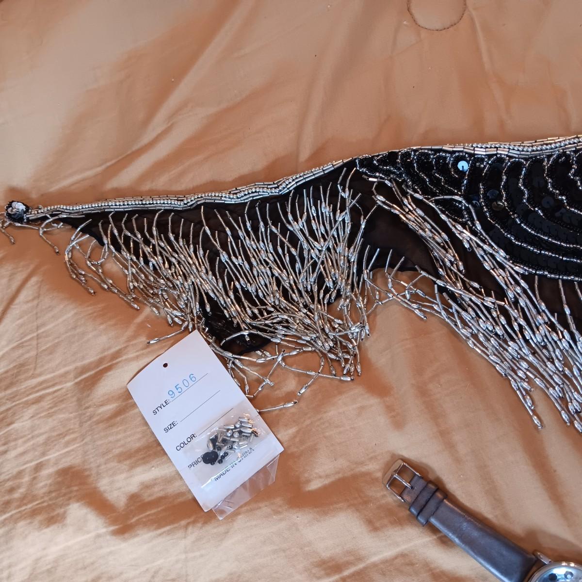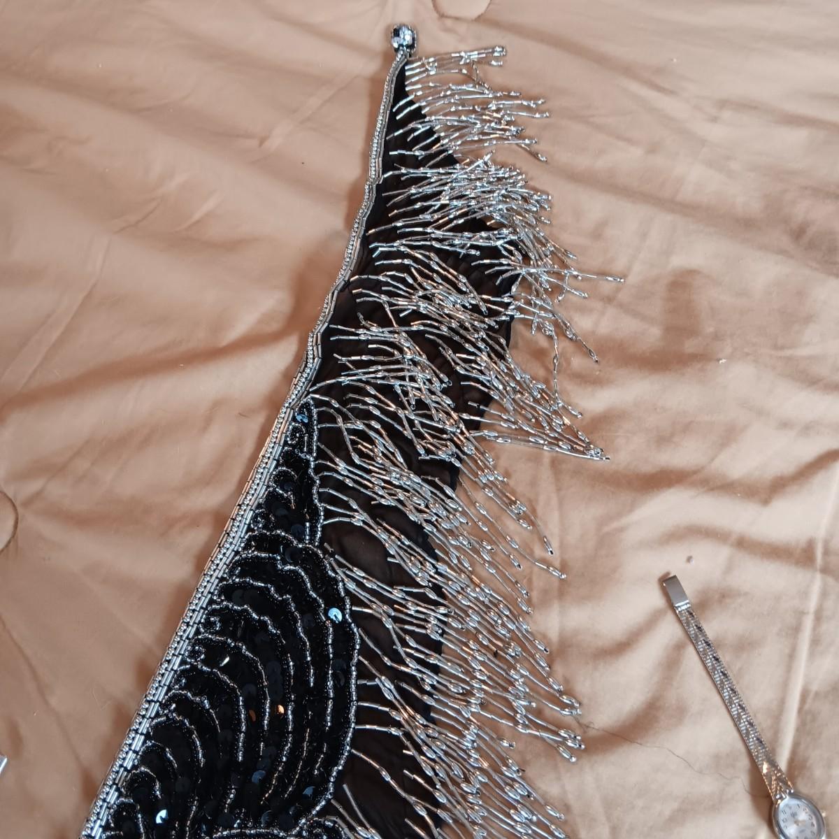 BEADS AND SEQUINS SCARF, 2 WATCHES AND SMALL ZIPPERED BAG