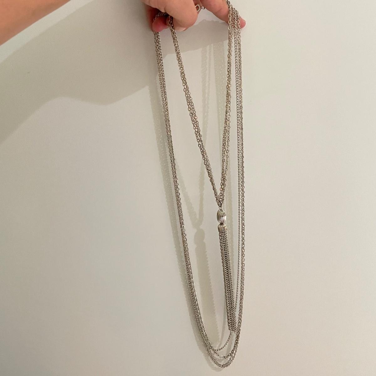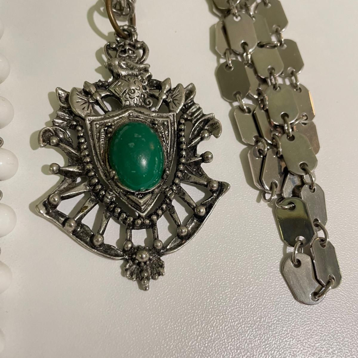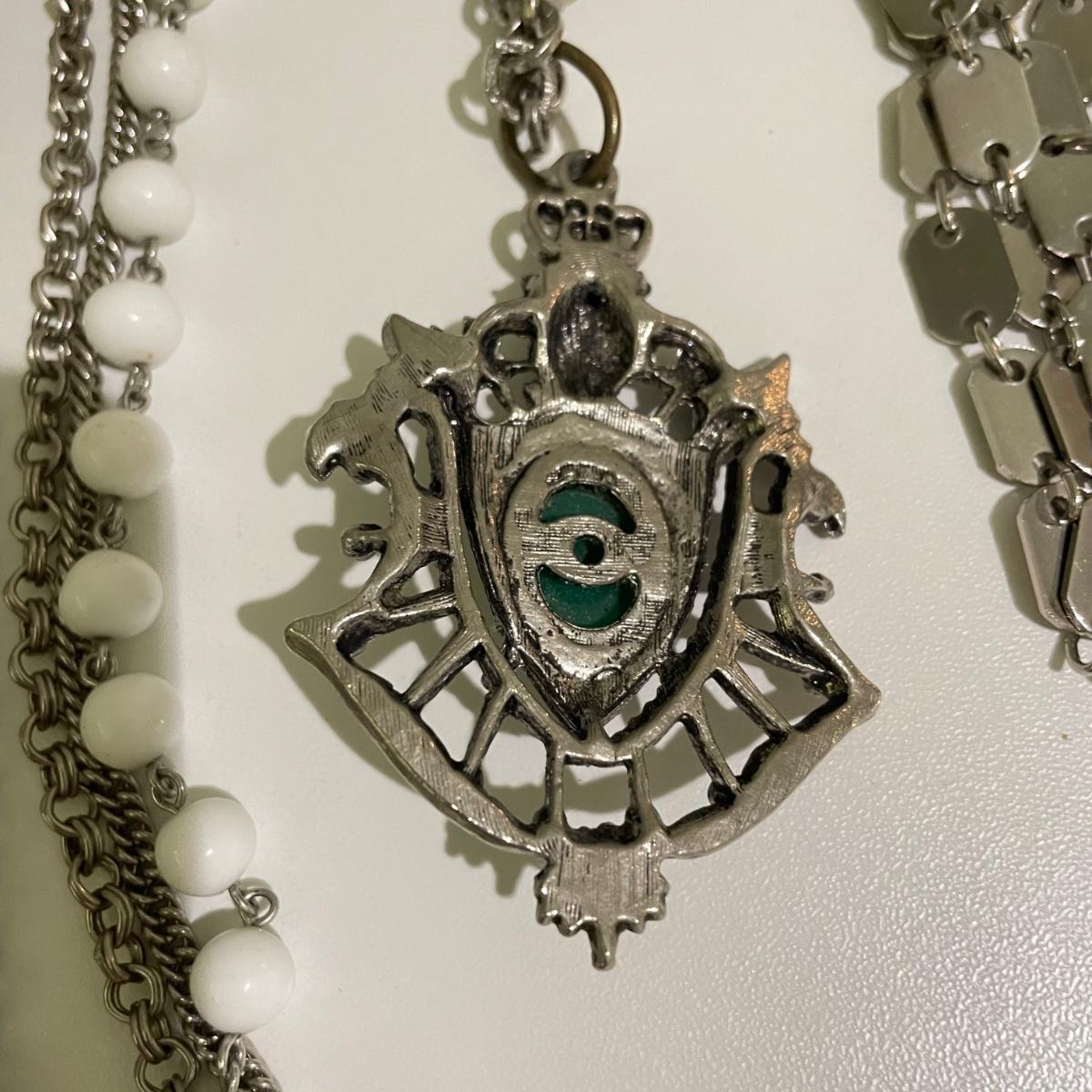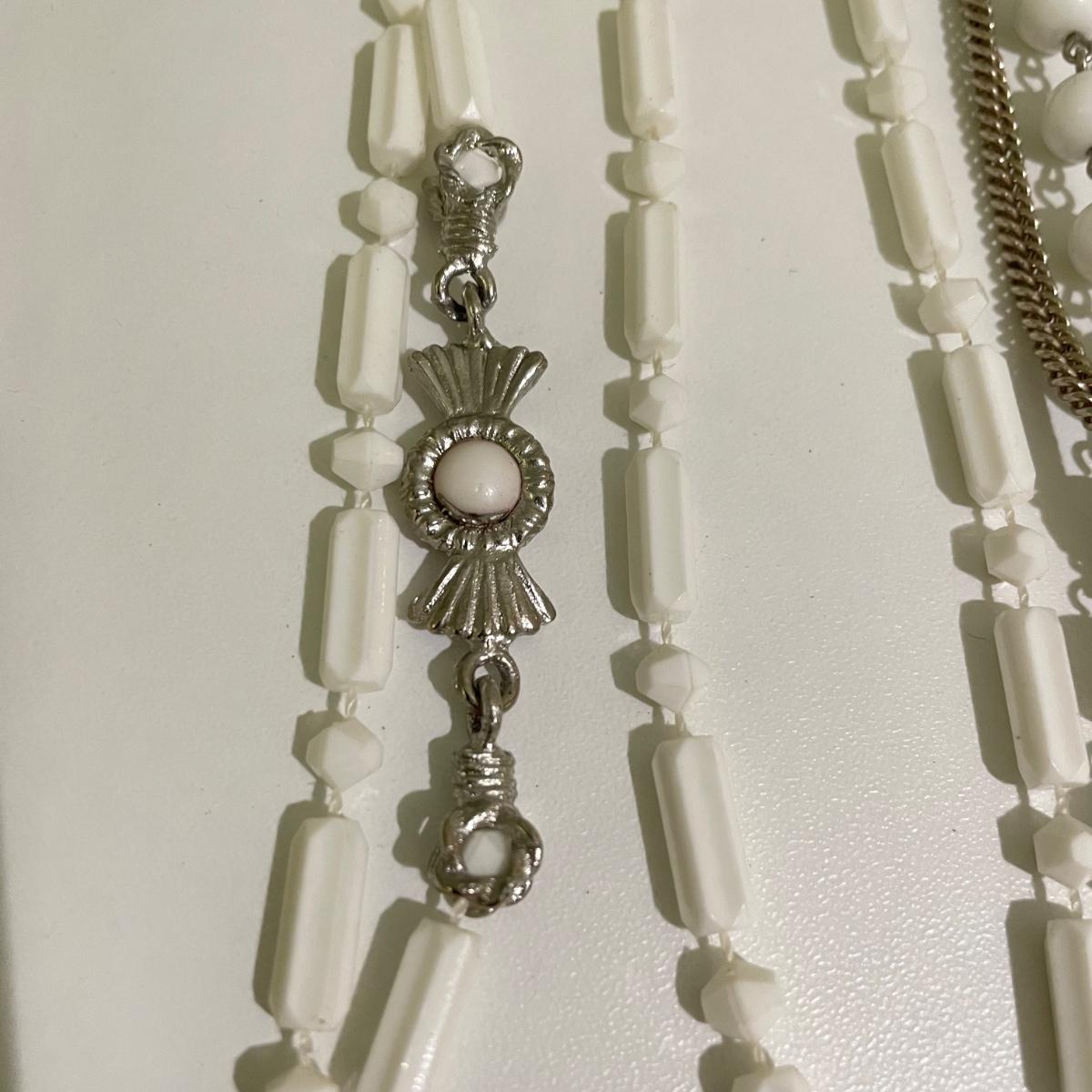 Nine nice necklaces ranging from 26” to 14”. Some have pearly beads and some are resin or possibly stone. Four are meant to be layered. See images. Shipping available.